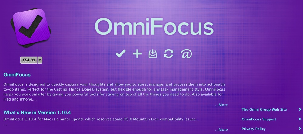 Last week OmniGroup, publishers of, among others, the successful OmniFocus project management system, thought they had a way round the impasse. They produced a quick OSX utility, OmniKeyMaster, which would scan systems for existing purchases and then make it possible to obtain discounts on upgrades from the Group’s online shop. It was a good idea but it lasted for only a day or two before Apple squeezed the pips. Omni had to withdraw the helpful little app. This means that if you purchased OmniFocus from the App Store (current price £54.99) you will be faced with another big bill when you want to upgrade to the new version which will be released later this year. In my case, I bought direct from OmniGroup so I will be eligible for an upgrade price. If I had been foolish enough to have bought it from Apple the upgrade would be at full cost, just like buying a new product.