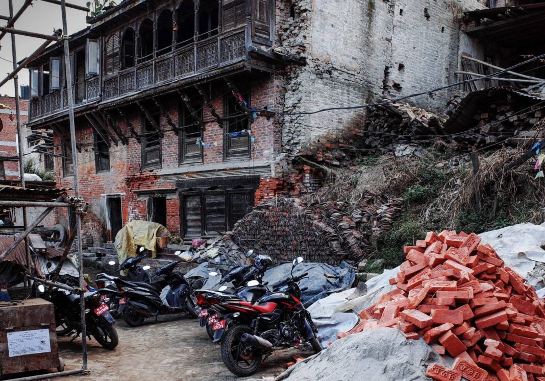 Everywhere you go in the valley, whether in cities or in the countryside, you’re bound to stumble on heaps of rubble from fallen houses. From what we saw, houses collapsed randomly and you wonder why one is down while another is still standing. Most original buildings were made of bricks with a timber frame and did not resist the 7.8 magnitude quake. Now, when rebuilding, the frame is made of reinforced concrete.