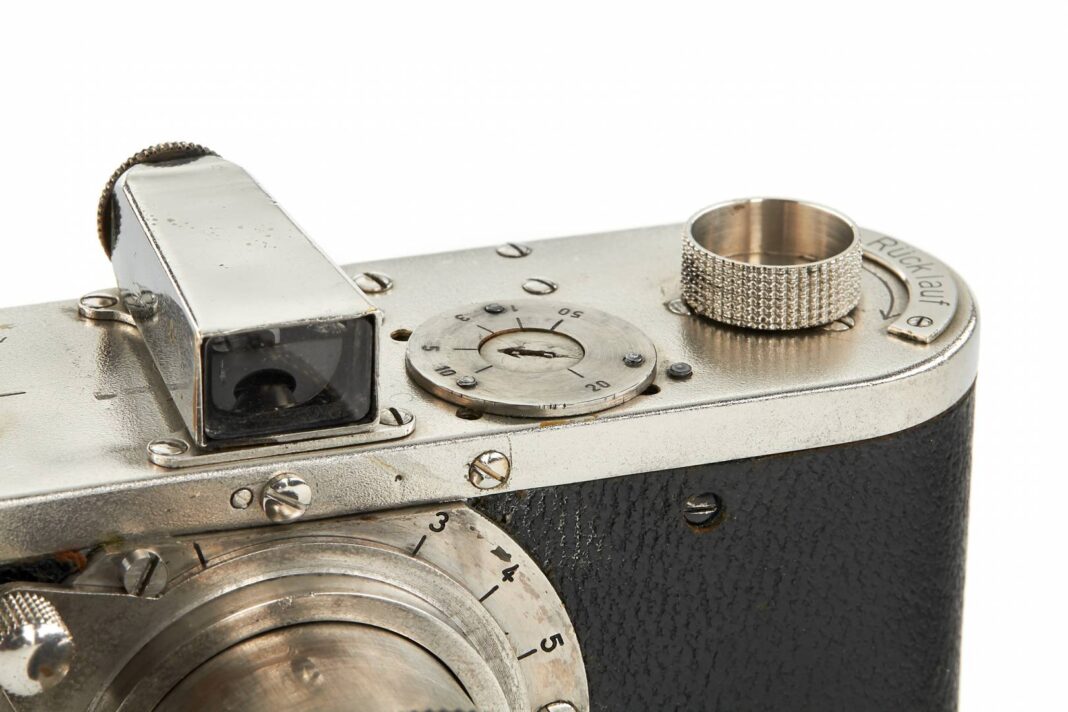 It seems that this camera was used for test purposes for several years and was modified and reached its final form around 1938. The camera features a very early Anastigmat 50 mm f/3.5 lens which was designed by Max Berek. This lens was later developed to become the 50 mm Elmar, which was the lens that ‘made Leica’.