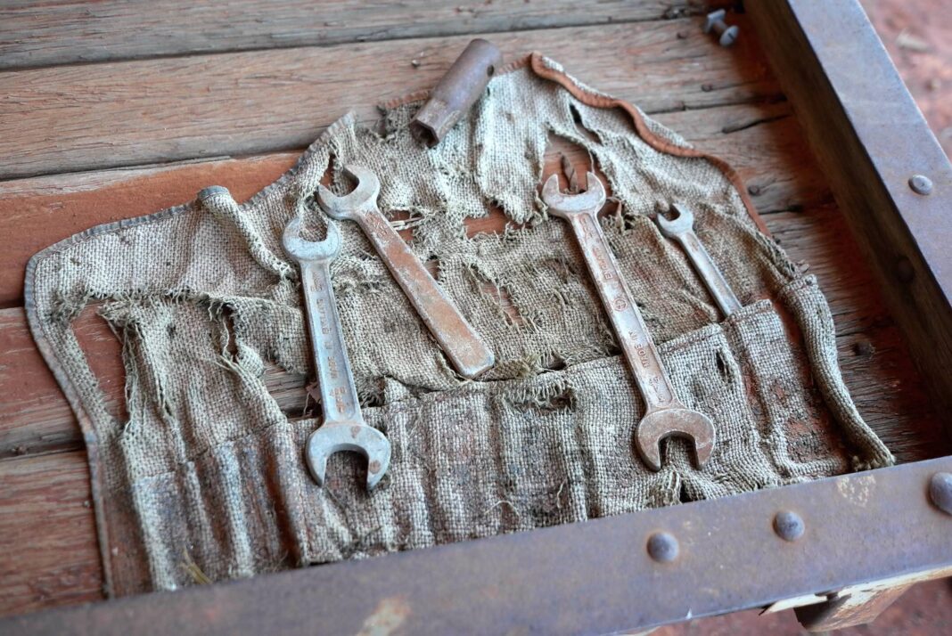 Protected from the elements by the shade and shelter of a shed, the old warrior was blemished only by the red dust. Kept in such a dry climate, it is a vehicle which awaits restoration. But certainly there’s no hurry on that front. Even the original tool kit is still open and untouched on the rear of the vehicle—a credit to the honesty and responsibility other travellers who have also found it, and respected it enough to leave it in peace.