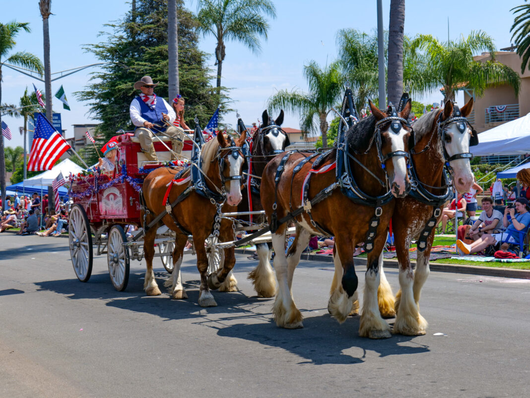 As this tradition implies, horses—their droppings-and considering where the droppings drop—feature prominently at this event. It harkens back to the country’s history, when horses hauled stagecoaches and settler wagons, or carried cowboys across the prairie. The horse became an integral part of the country’s culture. San Diego County is also home to the Del Mar Race Track, giving rise to many stables and horse farms in the district, some of which are showcased in the parade.