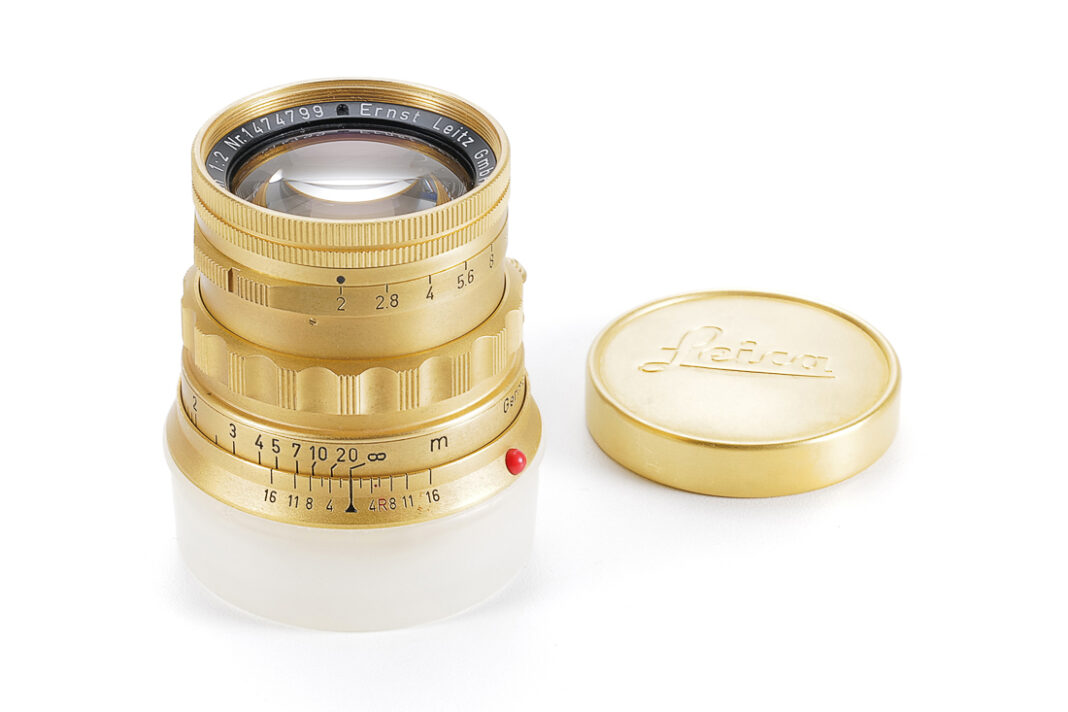 Lot 0119 Leitz Summicron 5cm f/2 gold plated, serial number 1474799, 1957. Start price €12,000 – estimated range €20,000-€25,000.