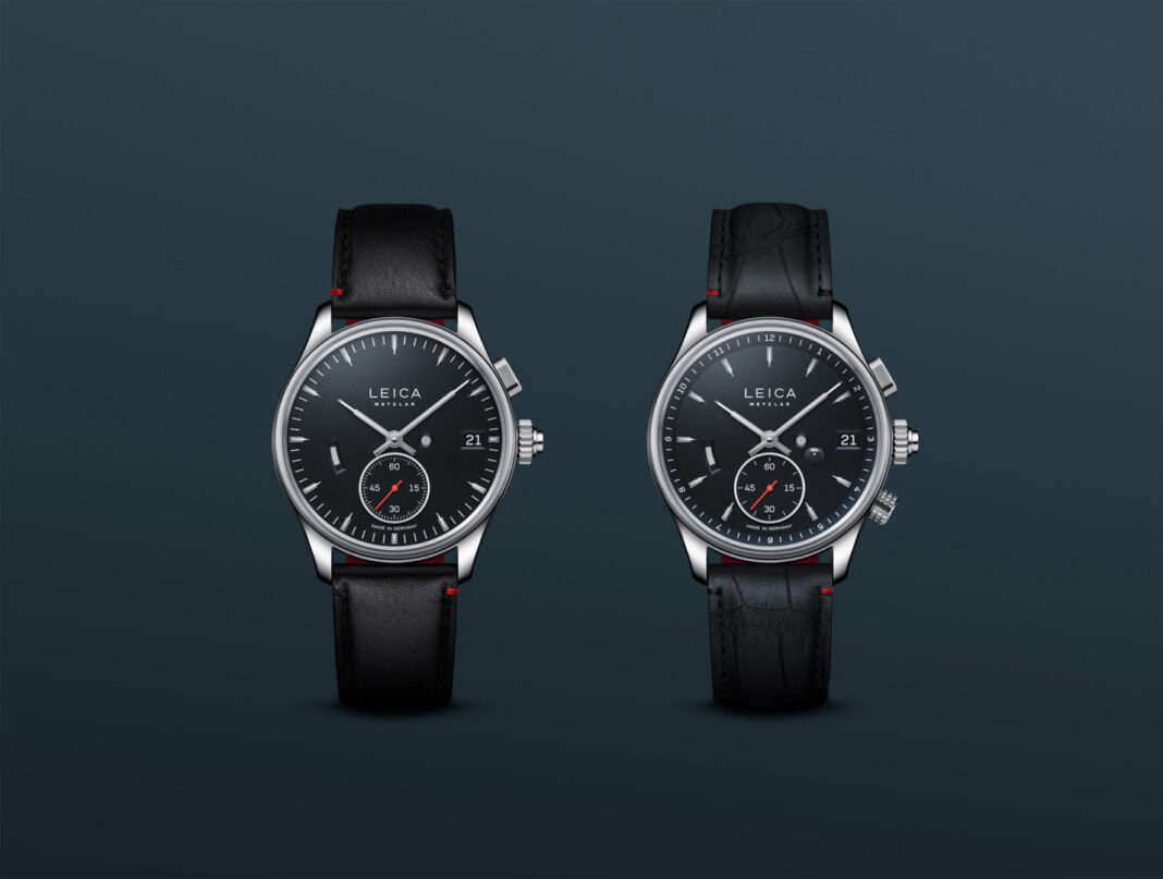 The two manually wound watches are made in Germany in partnership with Lehmann Präzision GmbH based in the Black Forest area. They are powered by a newly developed mechanical movement and feature an unusual push-crown adjustment. In contrast to conventional designs, where the crown is pulled out to stop the movement and adjust the time, the Leica crown replicates the movement of a camera shutter release. Pressing the crown stops the watch and the secondhand jumps to zero. Another click releases the movement again.