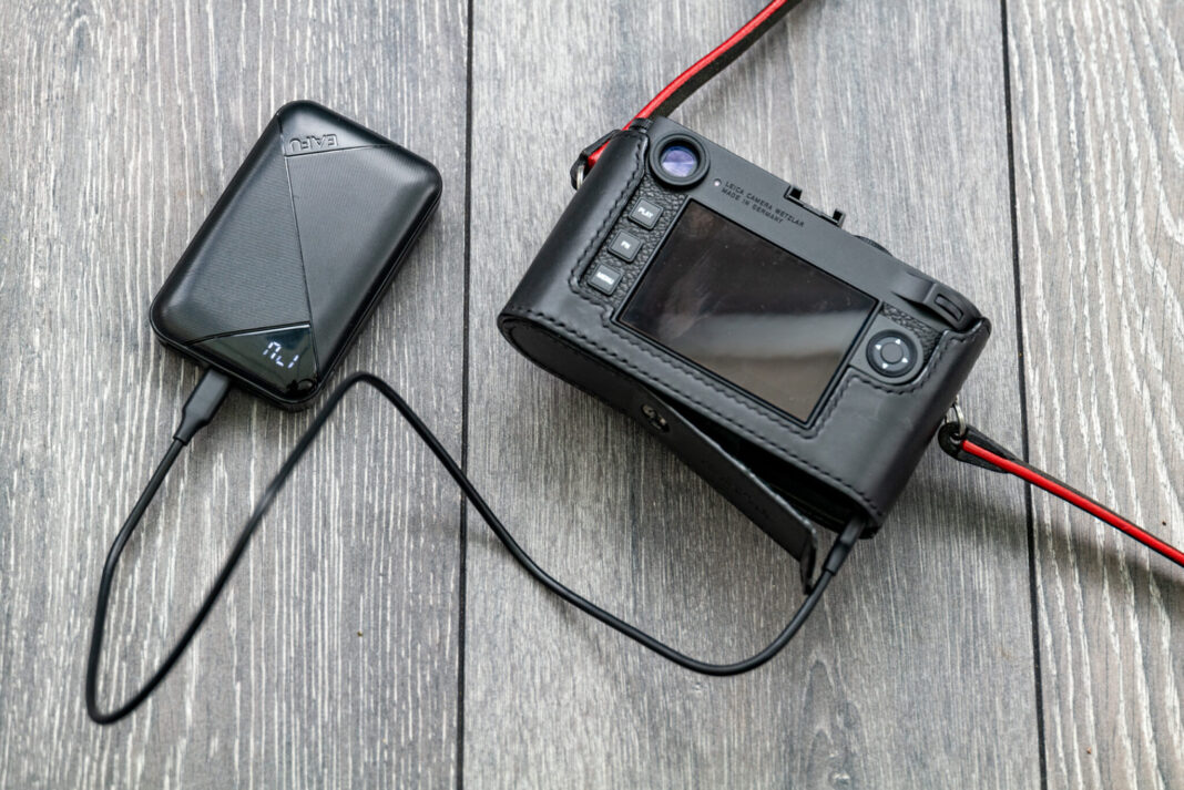 Now I can plug in anywhere, using a common USB-C outlet. I’ve even charged it in Starbucks. I certainly have no intention to buy a spare battery at a cost of £142. A cheap power bank, such as the 10,000 mAh device you see in the pictures, is well capable of trickle-charging the M11 battery, rated at 1,800 mAh. I now keep the power bank in the camera case and keep it plugged into the camera so that the M11 is always fully charged. It’s a sort of power dock for the M11.