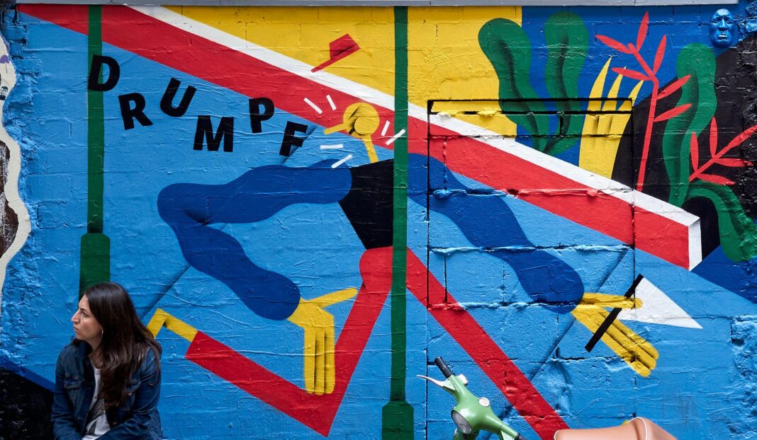 In their 2016 Wall Journal project, they painted a mural every two weeks in a public space. These touched on world events such as the Panama Papers, Brexit, and Trump’s presidential candidacy, among others.
