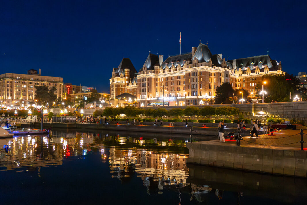 Victoria, the capital of British Columbia, sits at the southern tip of Vancouver Island. It was the smallest of the three cities on our itinerary, but offered no shortage of photographic opportunities. We stayed at the Empress Hotel, at Victoria’s marina, just around the corner from the Parliament of British Columbia. The hotel dominates the marina frontage, looking particularly splendid when illuminated.