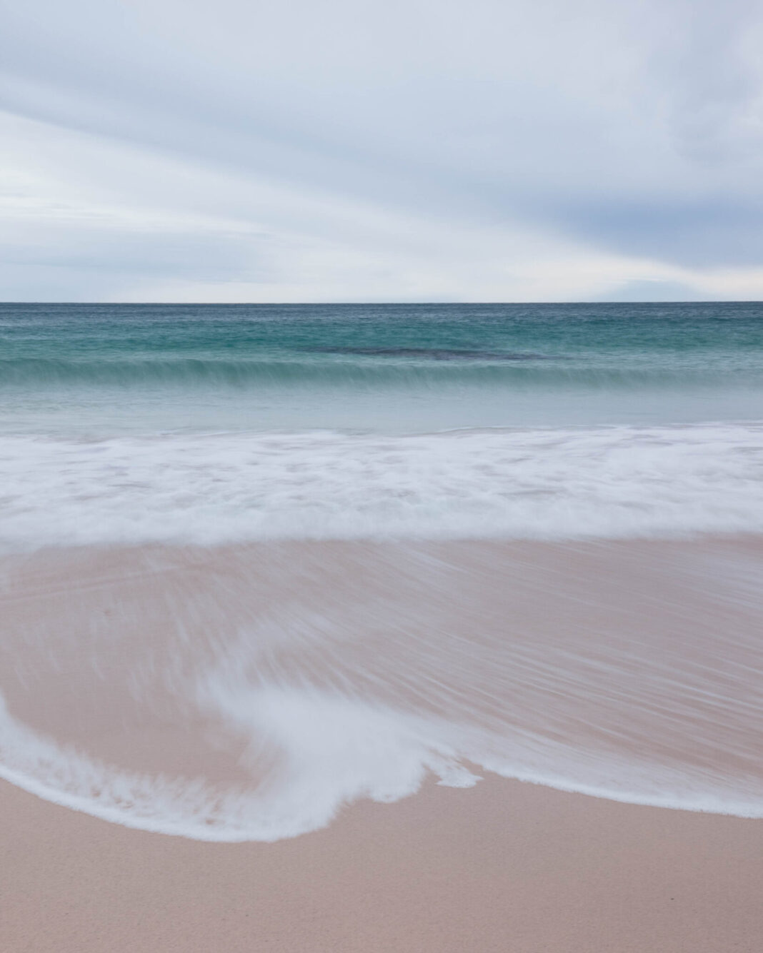But before we got there, we stumbled upon a gorgeous, small beach just north of the main strand. It was one of those beaches with crystal-clear turquoise water and the softest sand. The light was as soft as the sand, as was the surf, which smeared itself gently up the beach.