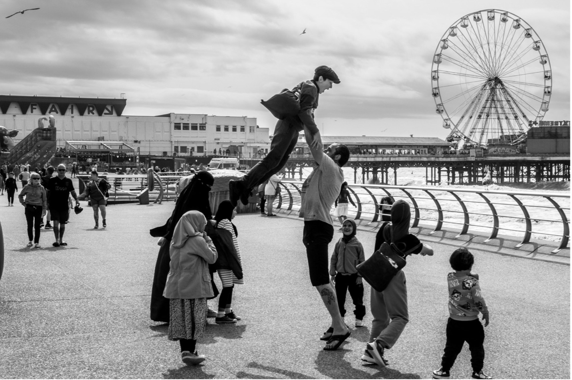 My question to you, Dear Reader, is therefore: In your opinion, is the โboy who almost flew awayโ image a good street photograph, or is it visually impaired by the location of the boyโs foot, consigning it to the darkroom floor? If it had been taken by a famous street photographer or perhaps by Martin Parr CBE, as an example of his seaside imagery, could it then be viewed as a โgreatโ photo? I would welcome your comments.