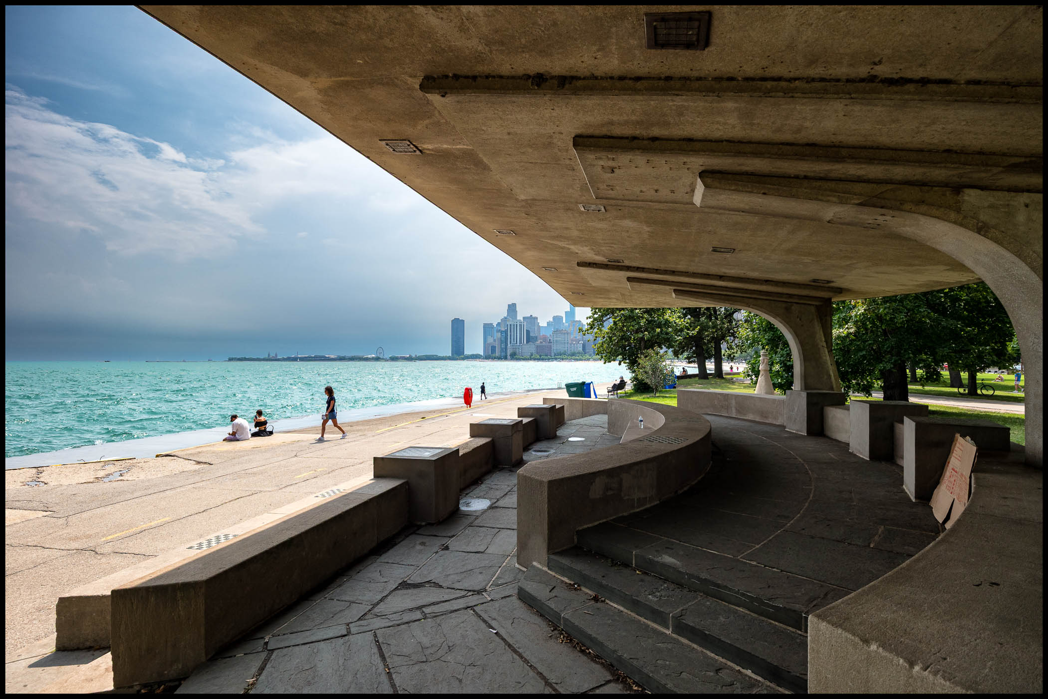 The first shot is one of my favourite places on the lake front, by the Chess Table. There are multiple chessboards built into the structure, and during summer months it is quite often busy with intensely focused chess players. With a bit of work in post, I could capture both the beginnings of a Churchillian-like storm and the underside of the canopy in shadow.