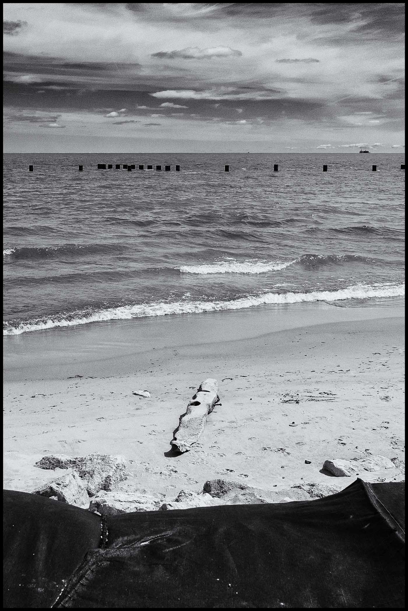 This is a piece of flotsam that has ended up on the beach. I converted it to B&W using Silver Efex. Thereโs quite a lot of grain considering the shot was taken at ISO 200. I like the starkness and the impression of the vastness of the lake. The object on the skyline is one of the water filtration plants offshore to provide Chicago with fresh water, and not a ship.