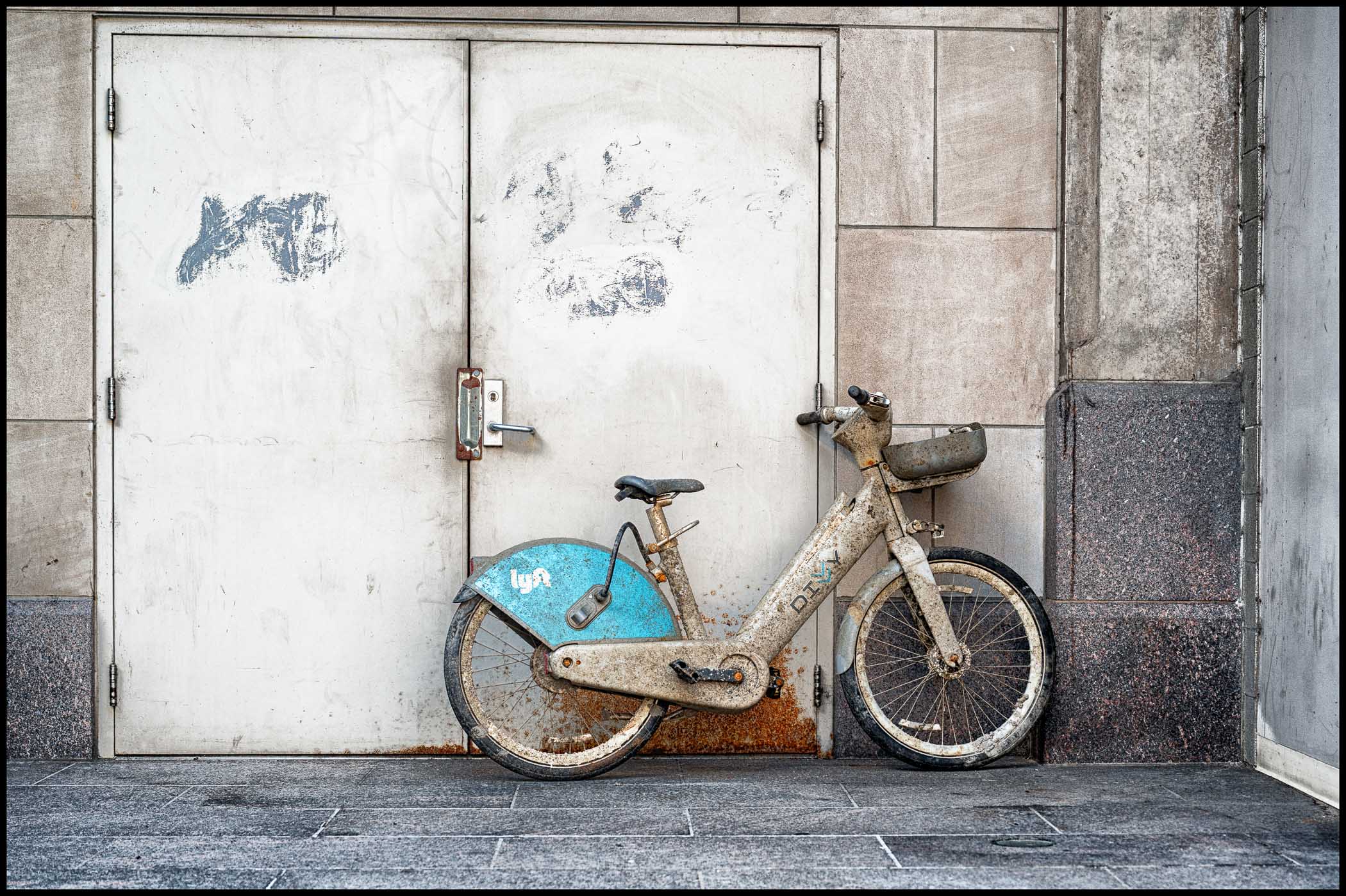 This might be titled โBetter daysโ as the bike has suffered quite a lot of surface damage. The title might also be a self-description, but that’s a different story. I suspect the bike had been on a building site and may have also been tossed in the river. It begs a story.