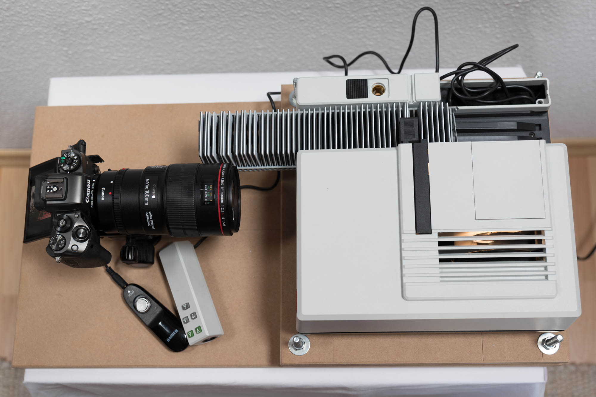 When I had to find a solution for the 20,000 slides our father had left us after he died, I came across a solution called Diadigifix by the German manufacturer, Fotonovum. A digital camera and a suitable macro lens are all it takes to use this conversion kit for slide projectors to capture the lit-through slide. All you need, including the material for a sturdy base, can be had for โฌ100 (without camera and lens, of course).
