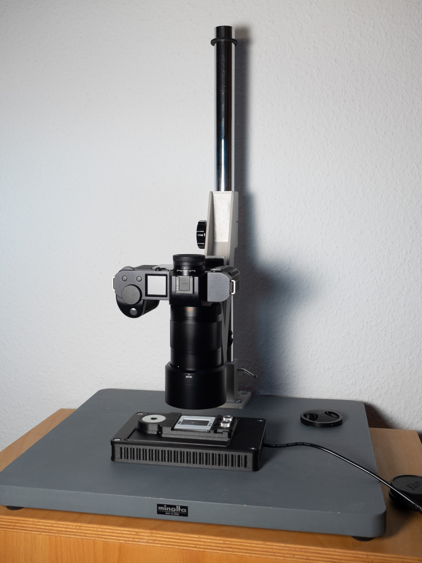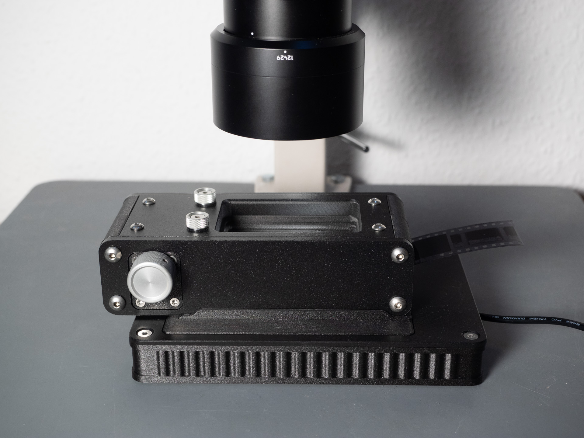 Back to my negative scanning needs: Fotoimpex is the German distributor for the products by Negative Supply from the US. Basically, these are light sources (evenly lit by high CRI LEDs) and film holders. You then add a camera with a macro lens and a copy stand, and you have all you require.