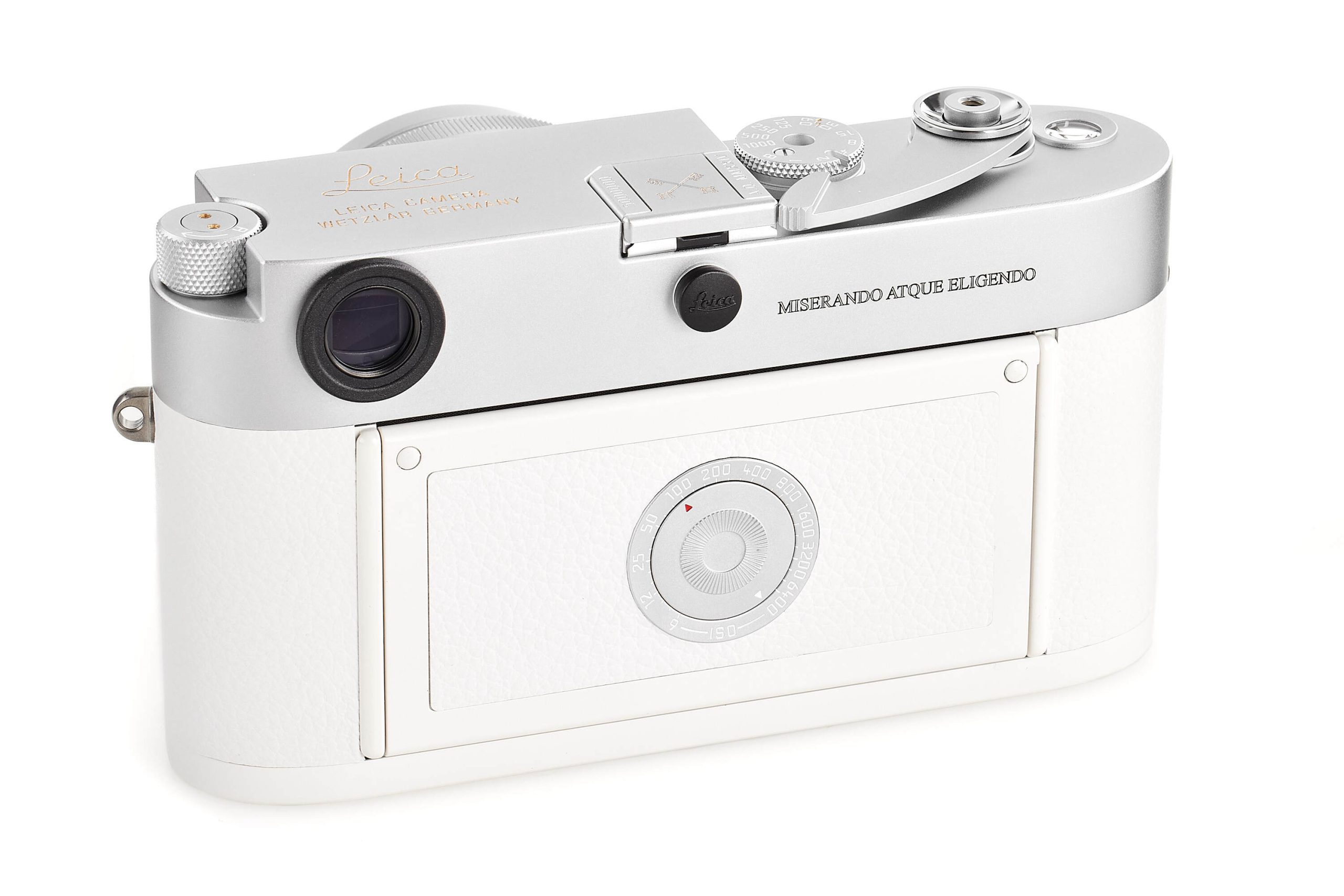 I never knew that Pope Francis had a Leica until this auction catalogue appeared. It appears that the lovely white-and-chrome Leica M-A with a Leica 50mm f/1.2 Noctilux lens was presented to him in 2024, just before his death, and the camera is engraved with the year in Roman numerals, AD MMXXIV.