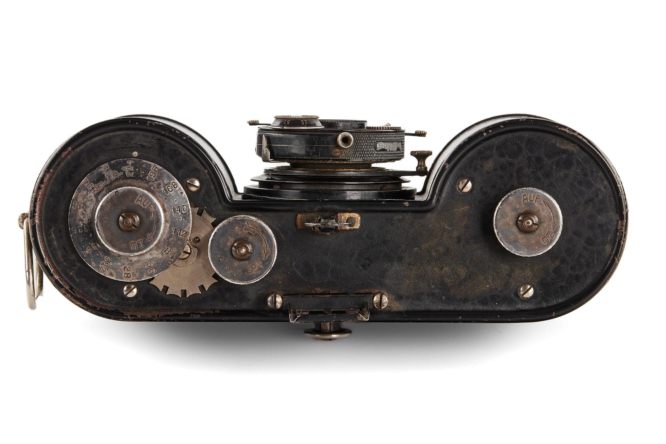 It has a 3.5cm f/3.5 Cassar lens in a dial-set Compur shutter. The camera was made by Otto Seischab in Nuremberg. However, I am certain that Oskar Barnack must have seen this camera before designing and making his 250 model.