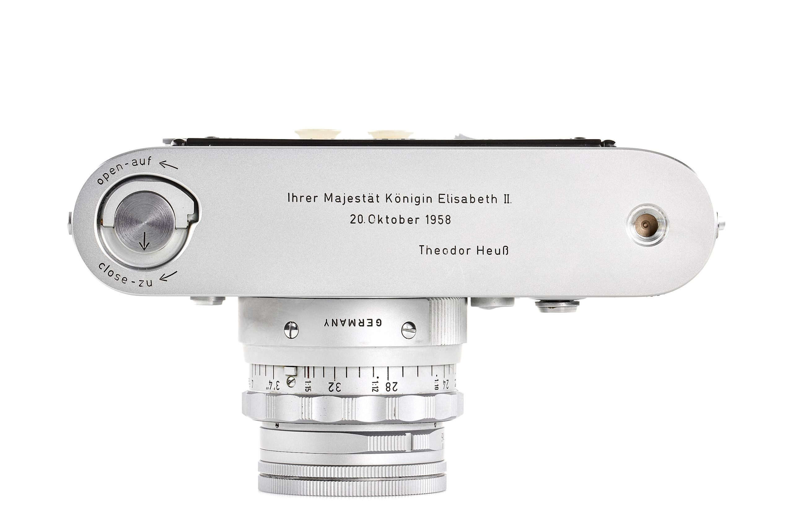 I have mentioned the Pope and Communism, but we also have British royalty in this auction. In October 1958, Queen Elizabeth II was on a State Visit to Germany and was given a Leica M3 by Theodor Heuss, the President of the Federal Republic of Germany.