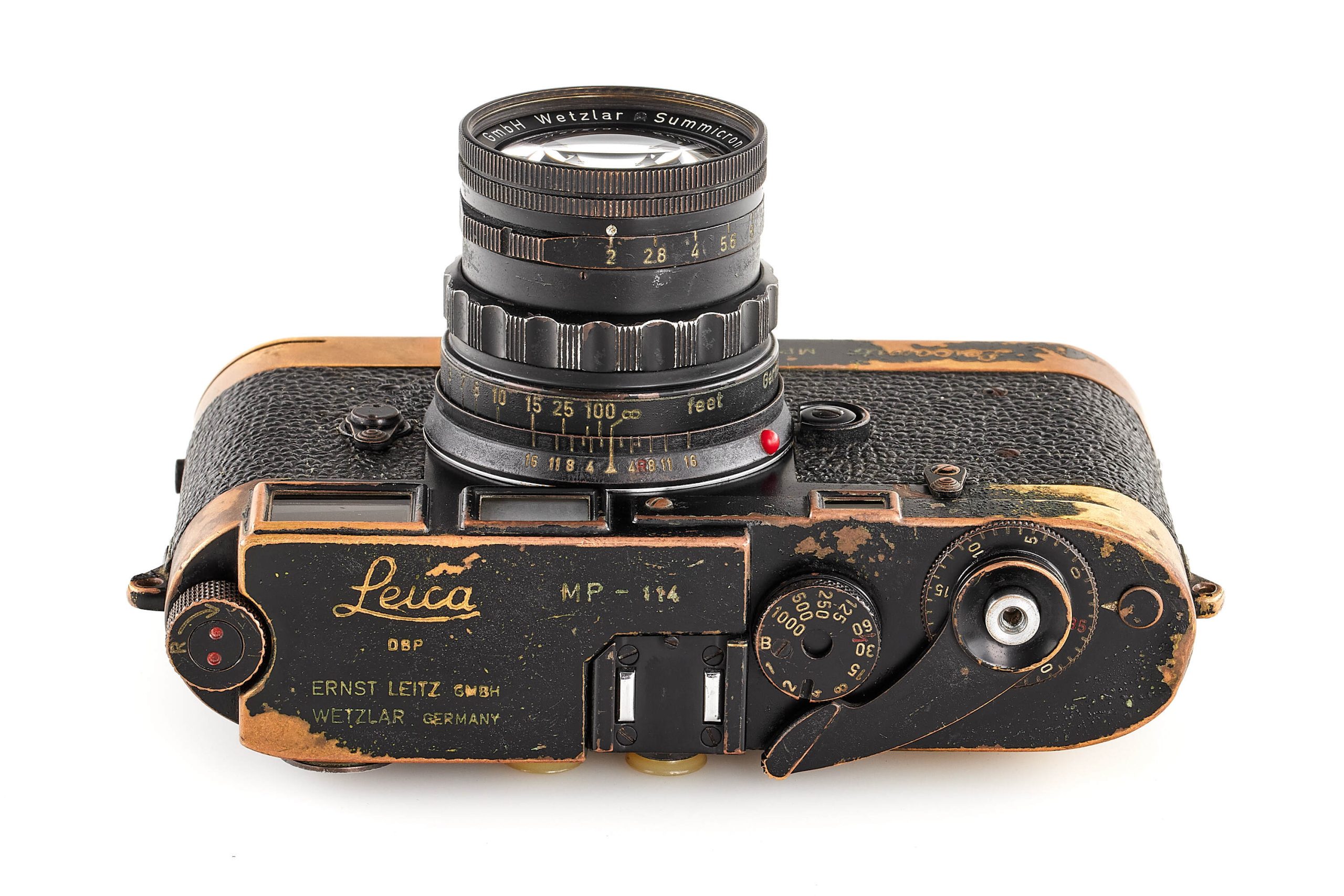 In this case, the camera MP 114, which comes with a 50mm f/2 Leitz Summicron lens and a Leicavit winder, has been in the possession of US photographer Frank Dyra and his family since 1959.
