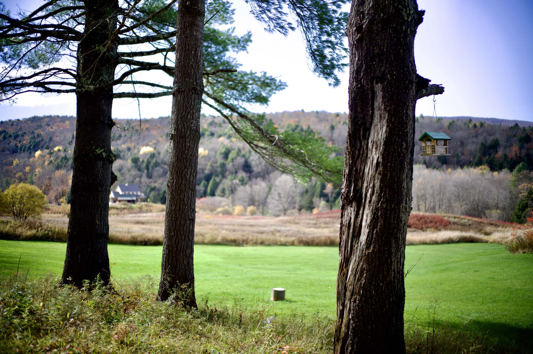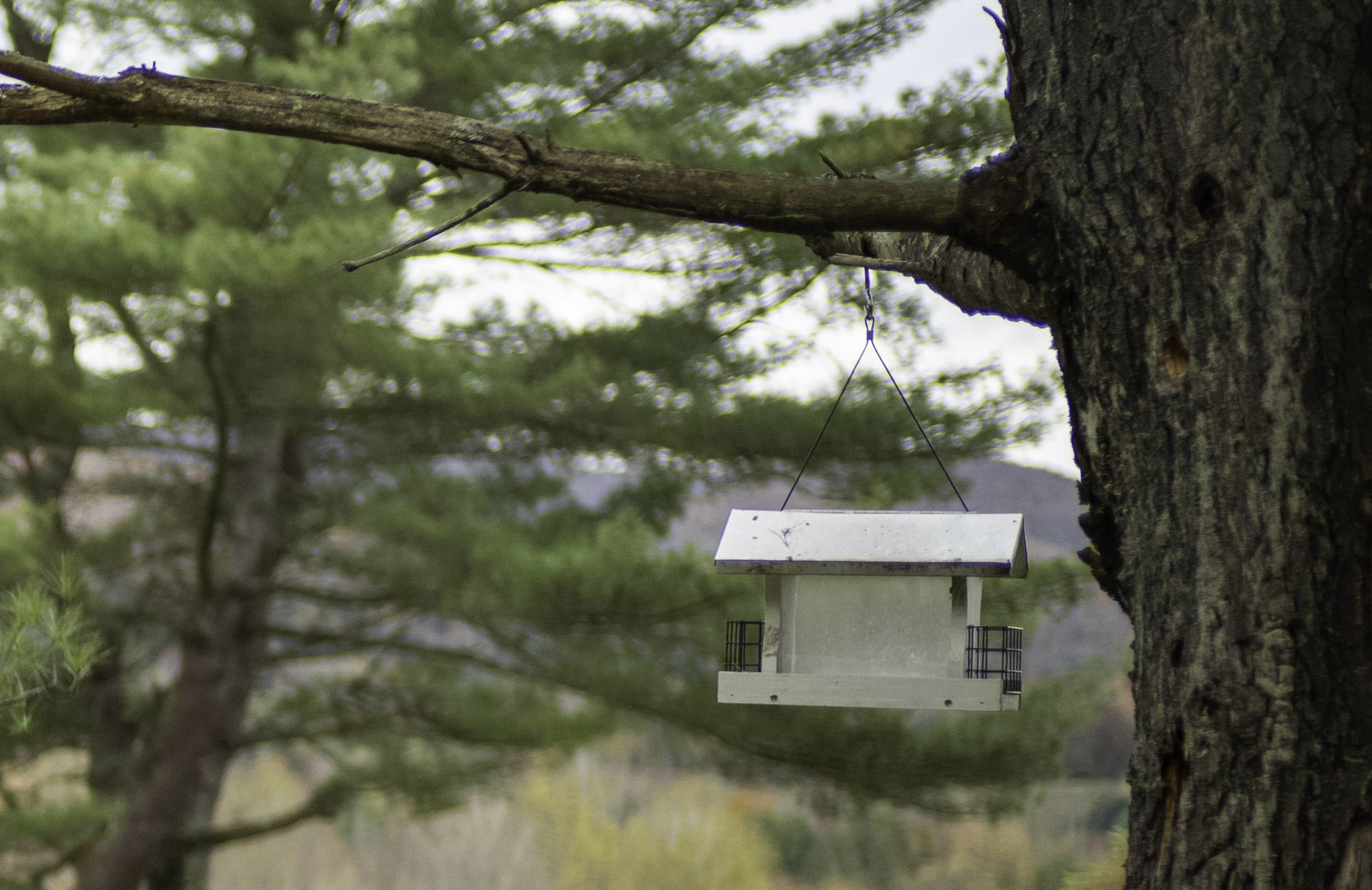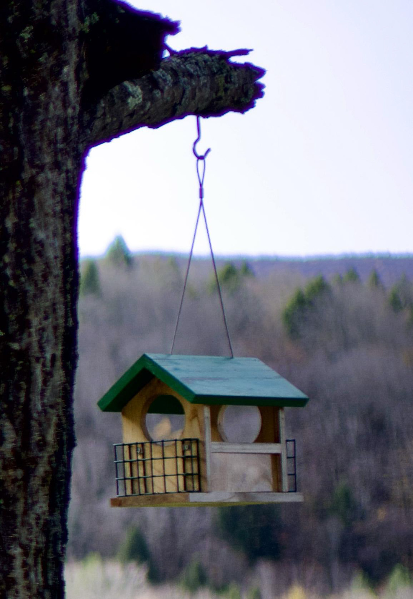 And here is a repeat of the little bird-feeder shot that I made with the earlier prototype as a test for edge sharpness/field curvature. I first focused on the feeder, then swung the feeder so that it was nearer the edge of the frame.