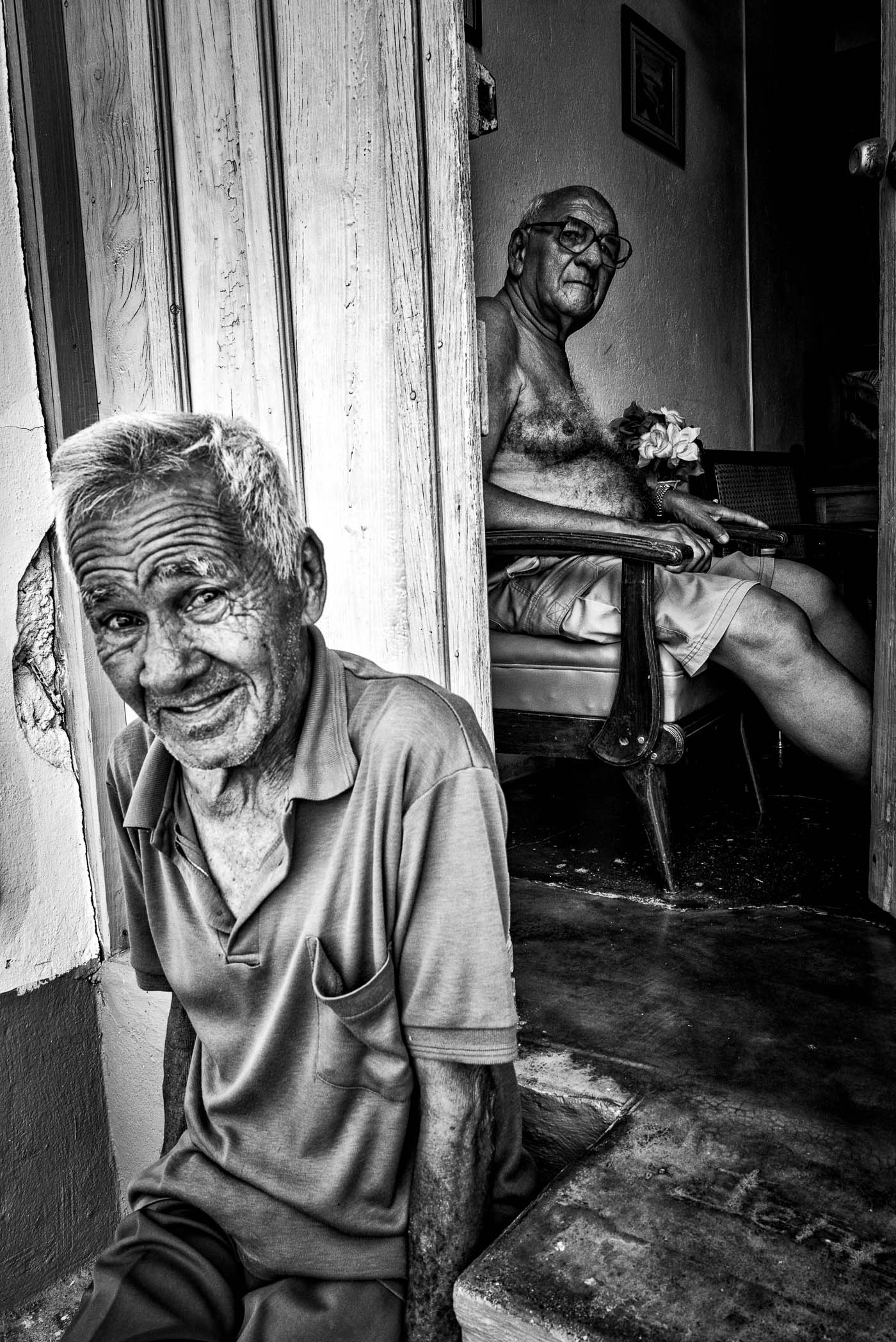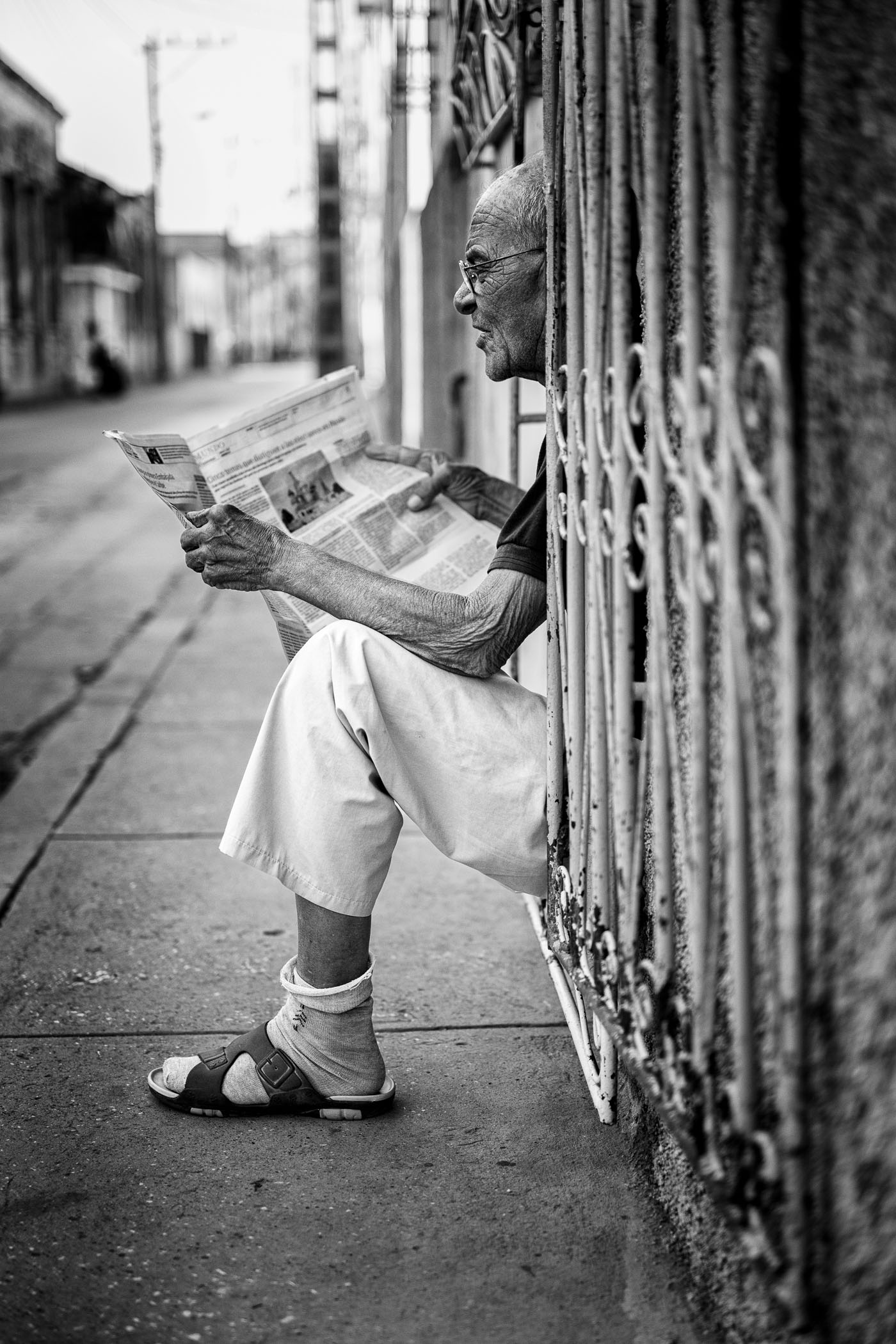 One morning in Holguin, I decided to take a walk and explore. As I turned a corner, I spotted a man reading a morning paper sitting on his stoop. I immediately clicked the shutter, only to realize an instant later that the man had only one leg.