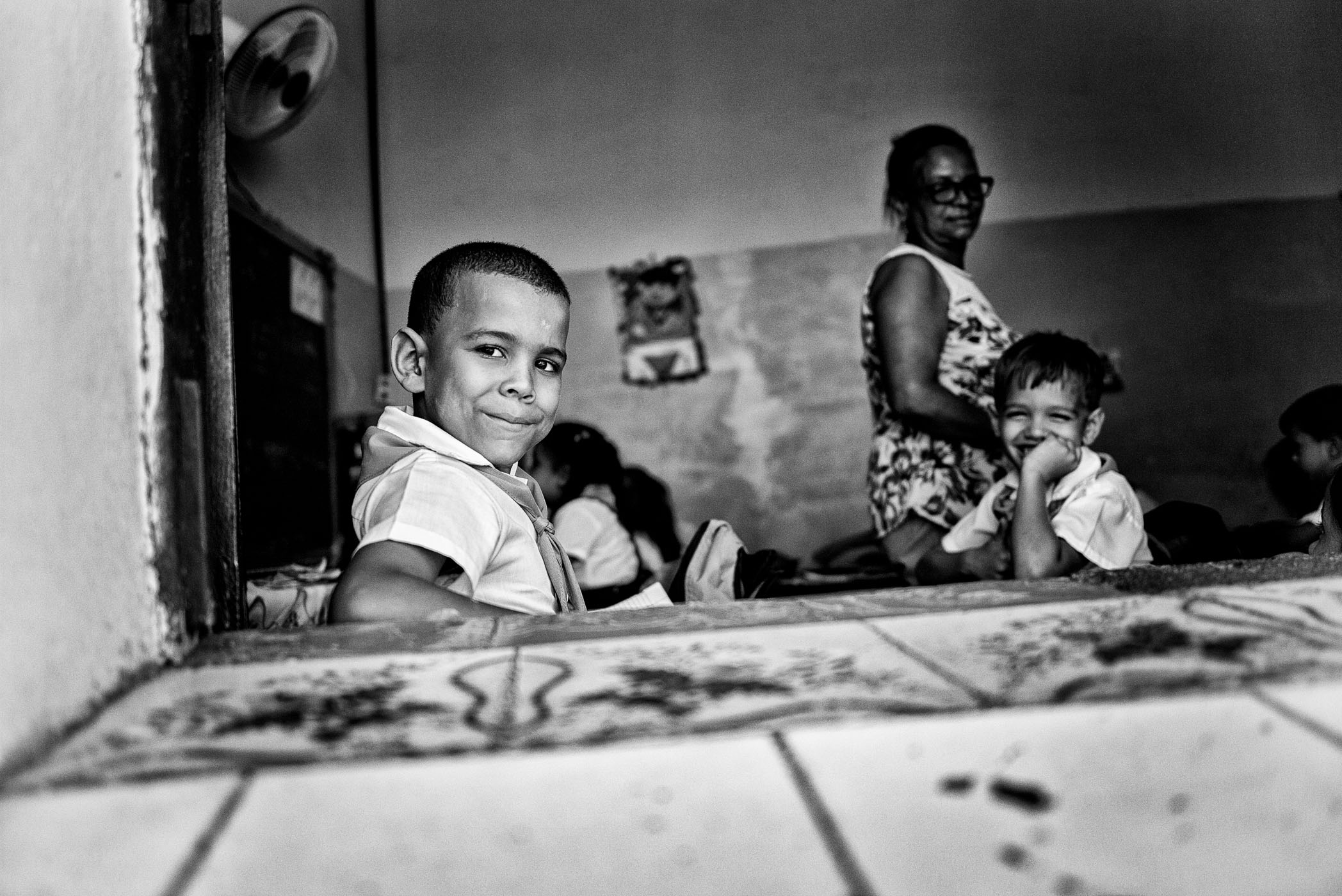 In the afternoon, I walked past the open window of an elementary school in Baracoa. I immediately remembered the man’s question about American elementary schools. Two children and a teacher peered out at me. As I made my photograph, my eyes were rapidly filling with tears.
