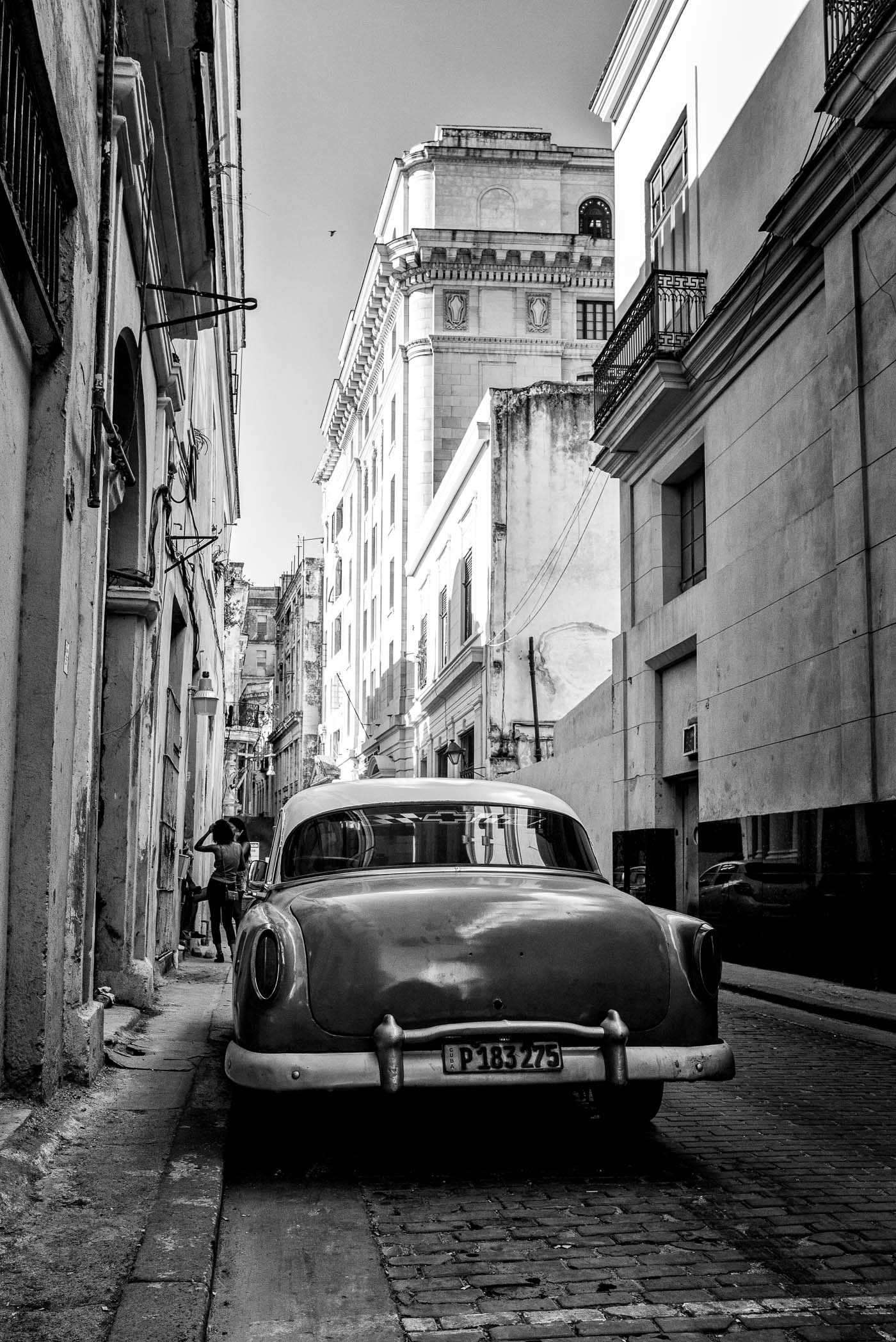 In a fortunate moment, I walked into a scene that in my mind captured the essence of Havana. On a cobblestone street, there was a 1954 Chevy Bel-Air parked at the curb, and on both sides of the narrow street multi-story buildings rose upwards, making the street feel like it was at the bottom of a canyon. The buildings had the classic ornate cut stone architecture and wrought iron that is emblematic of Havana.
