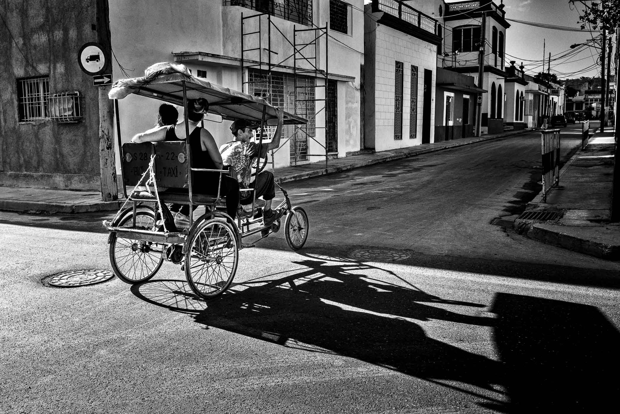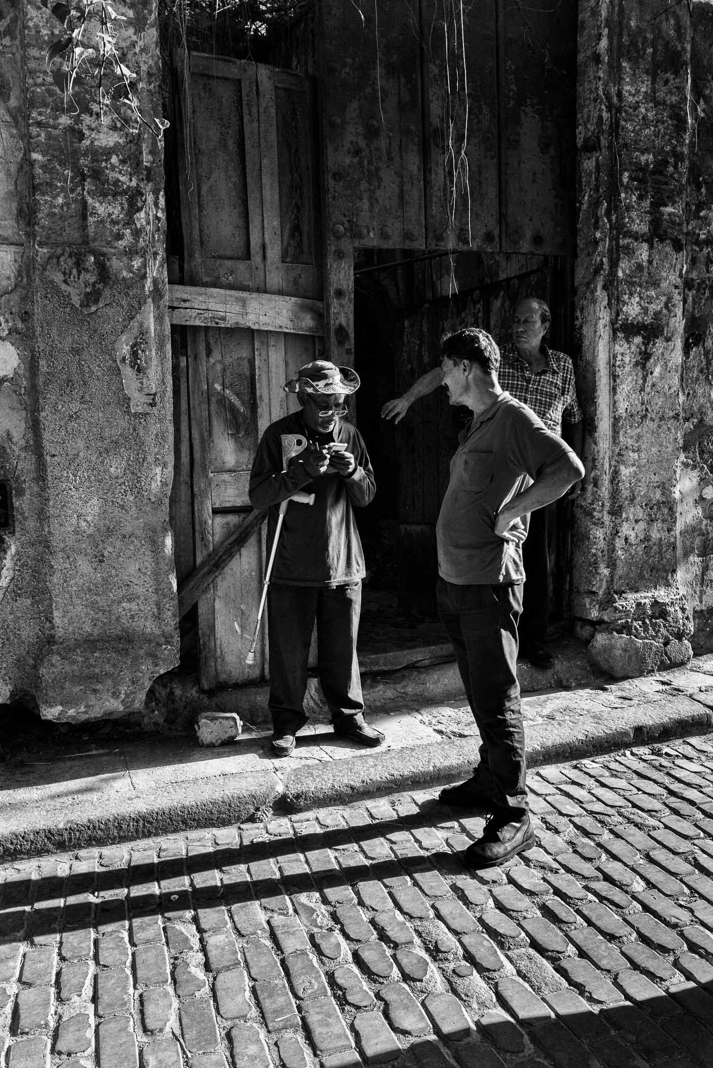 The sunlight reflected off his wire-rim eyeglasses, making them stand out on his face. The two men with him seemed to be waiting anxiously for him to interpret something in the notebook. This moment was another example of scenes that are common in Havana, where light and shadows create cinematic moments throughout the day.