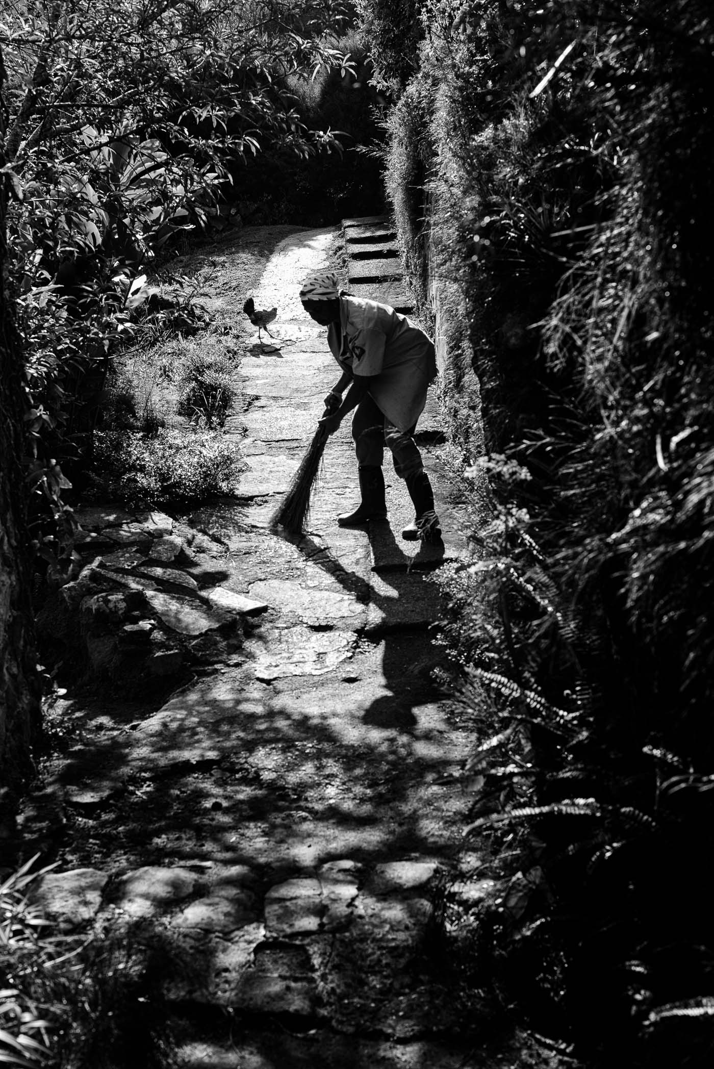 I stepped around a corner and there in the morning light was a Cuban woman with a headscarf on. She was sweeping the stone pathway, with a simple broom made from weeds bound tightly together. Behind her a chicken was clucking, and prancing aimlessly, as chickens do.