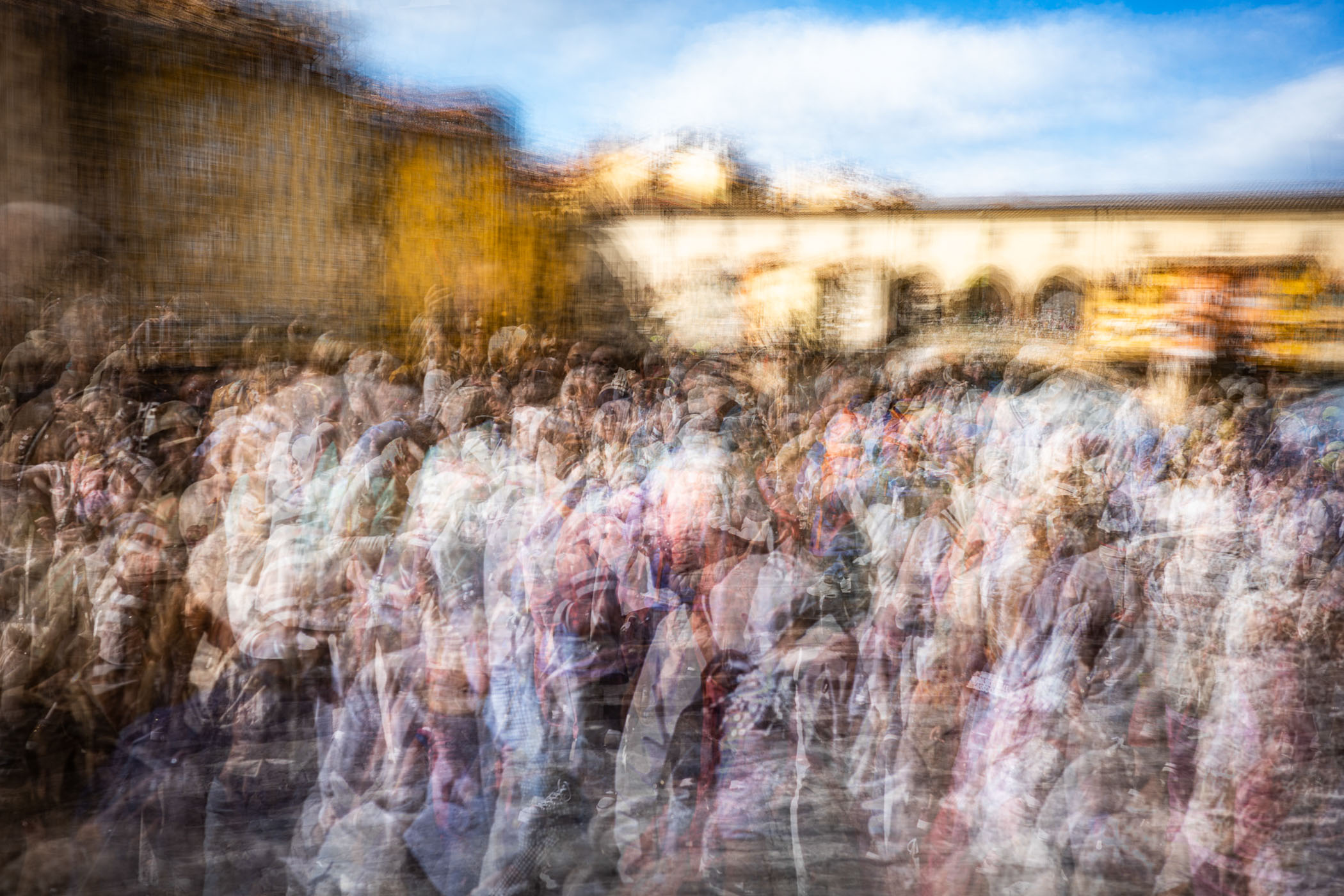 I turned to the task of capturing the masses of people on the streets of Florence using this compositing method. The first challenge as with all photography is to find a good composition. This meant being at the main “attractions” of the city and figuring out how to create a compelling image. A challenge that aimed to simultaneously show both the beauty of the city and the press of humanity.