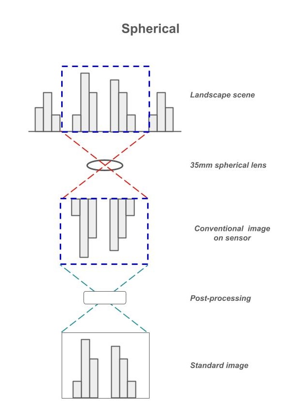 The spherical lenses with which we are familiar, almost certainly sitting on our cameras right now, produce a circular, unaltered image.