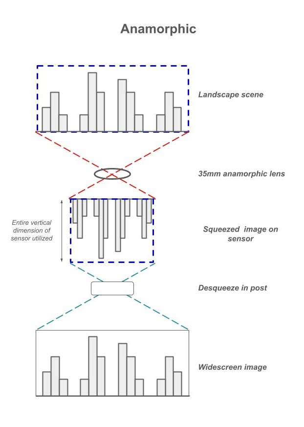 Before going further, I think a short diversion is in order to explain what the anamorphic format and anamorphic lenses are all about. I, for one, had heard the term bandied about for a while, without really understanding what it meant. So, for those not familiar with anamorphic lenses, here’s a quick overview.