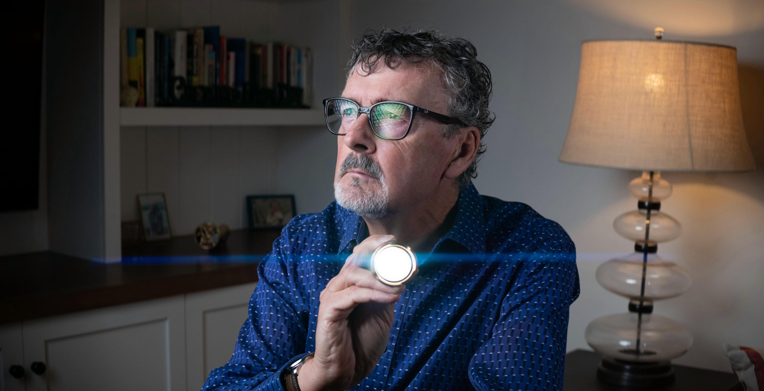 This final image illustrates how the wider field-of-view of an anamorphic lens can add additional context in a self-portrait shot. I threw in a flashlight for good measure, just to see that flare again.