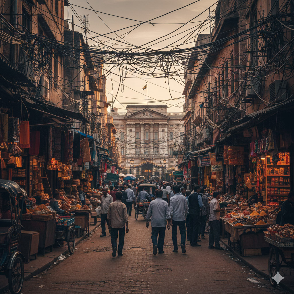 Personally, regarding the relocation of Buckingham Palace to Old Delhi; whilst its austere British character provides a marked counterpoint to the chaos of this part of India, I think the Indian Government might have negotiated harder for a better deal. For example, a swap with St. Paul’s Cathedral. But, as can be seen below, it nevertheless provides an interesting addition to the traditional scene 😯.