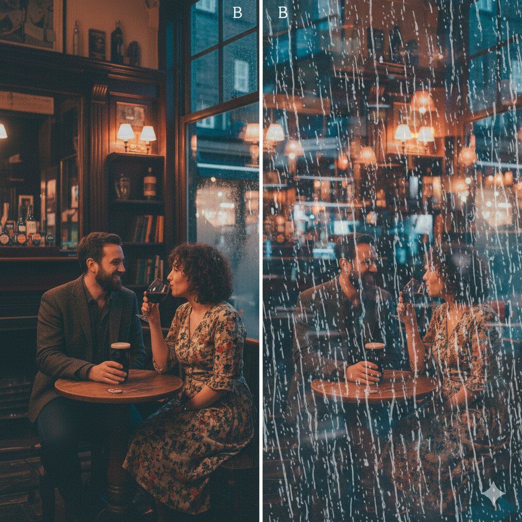 One of the first “image enhancements” I found in the manual was the ability to “Leiter-Up” any scene. So, in the pair of images below, the picture on the left is the scene that I came across in a London pub. Just before I pressed the shutter button, I gave the command “Leiter This Up”. Automatically, it enhanced the image to make a better shot. Wonderful, isn’t it!