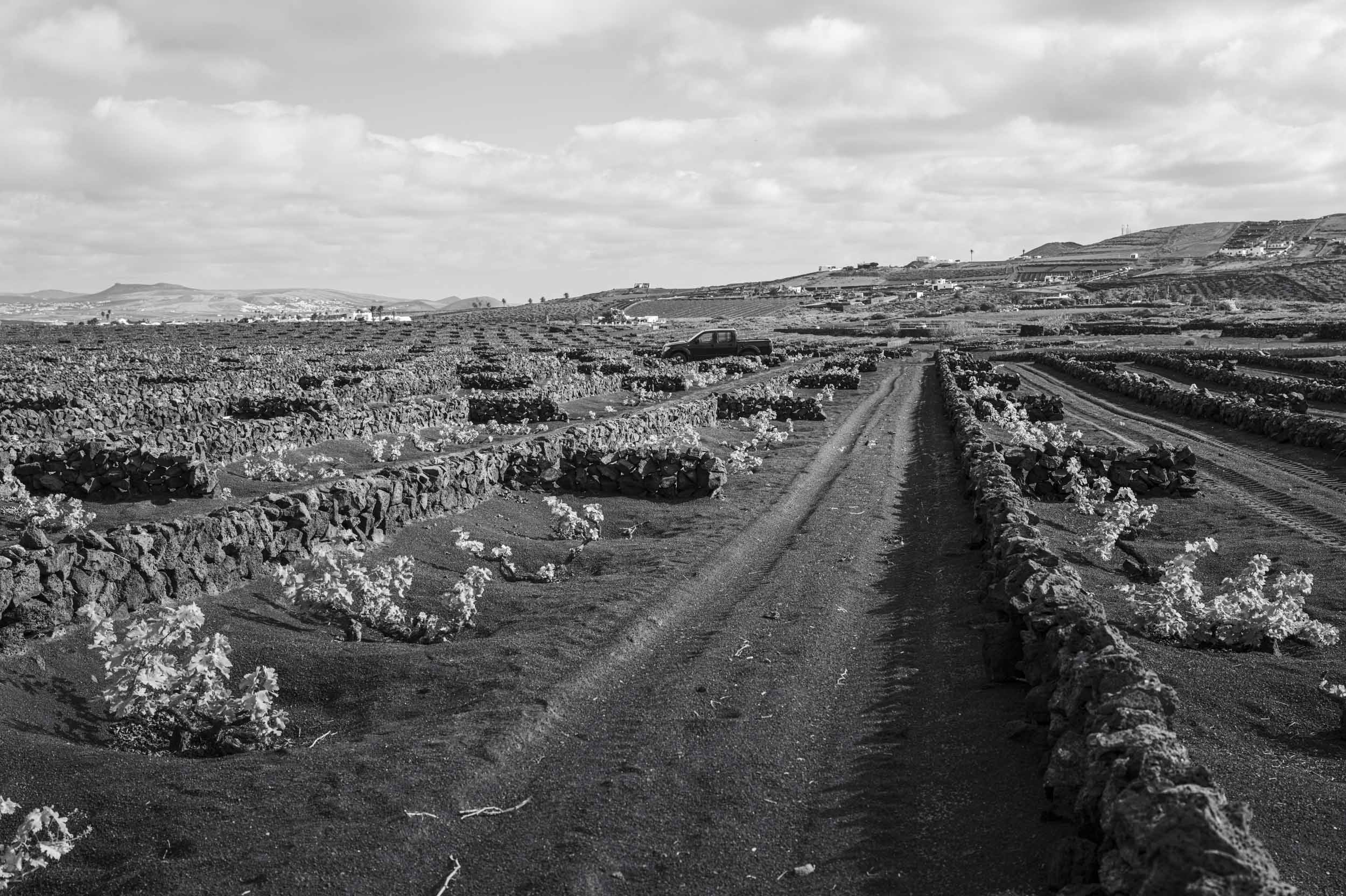 At the El Grifo winery, walls of volcanic rock shield serried ranks of vines from the wind. Each vine sinks its roots into the fertile soil beneath the volcanic ash, so its visible, fruit-bearing shoots spread horizontally across the surface. They all require a lot of space, so the density is far less than that expected in traditional vineyards.