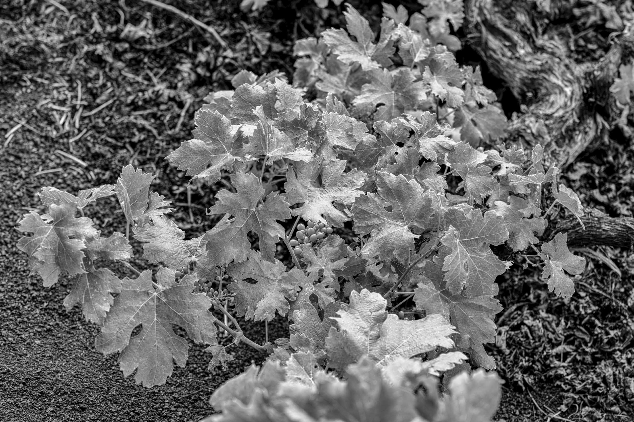 I think the vine leaves look so much better in natural colour. The contrast between green leaves and the dark volcanic ‘earth’ is more impressive in colour, Mike. Thank you for posting both versions.