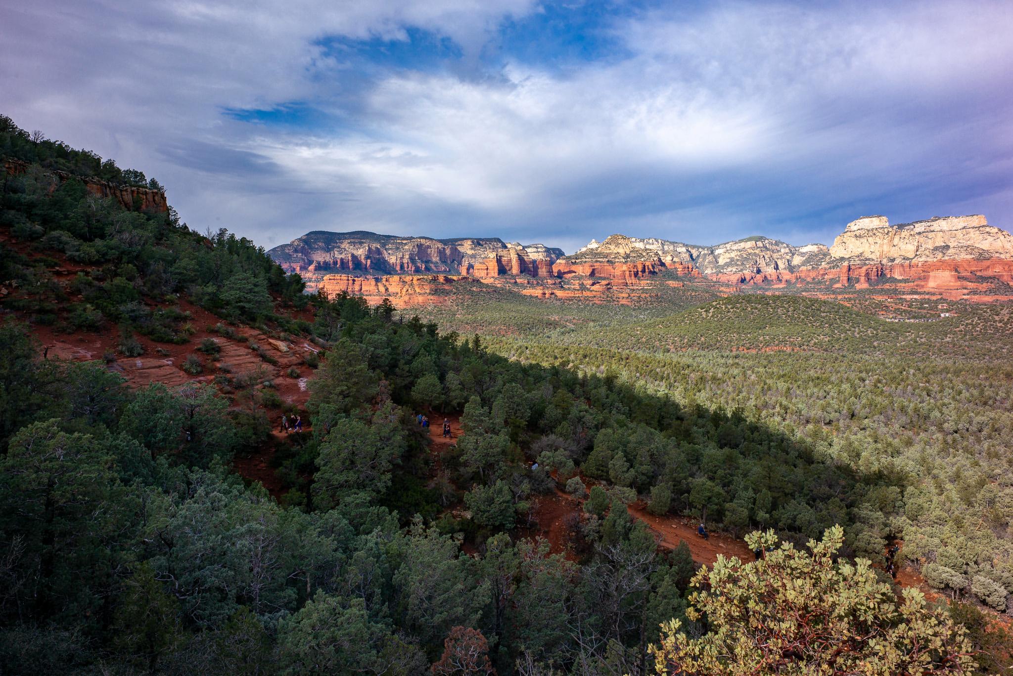 Our first stop was Sedona, a very popular hiking destination about ninety-minutes drive north of Phoenix. Sitting at 4,350 ft (1,326m) above sea-level, this location is considered by climate experts to be “high-desert”, with a semi-arid, seasonal climate. Visitors to the area can enjoy its iconic red rocks, interspersed with chaparral and forested areas.