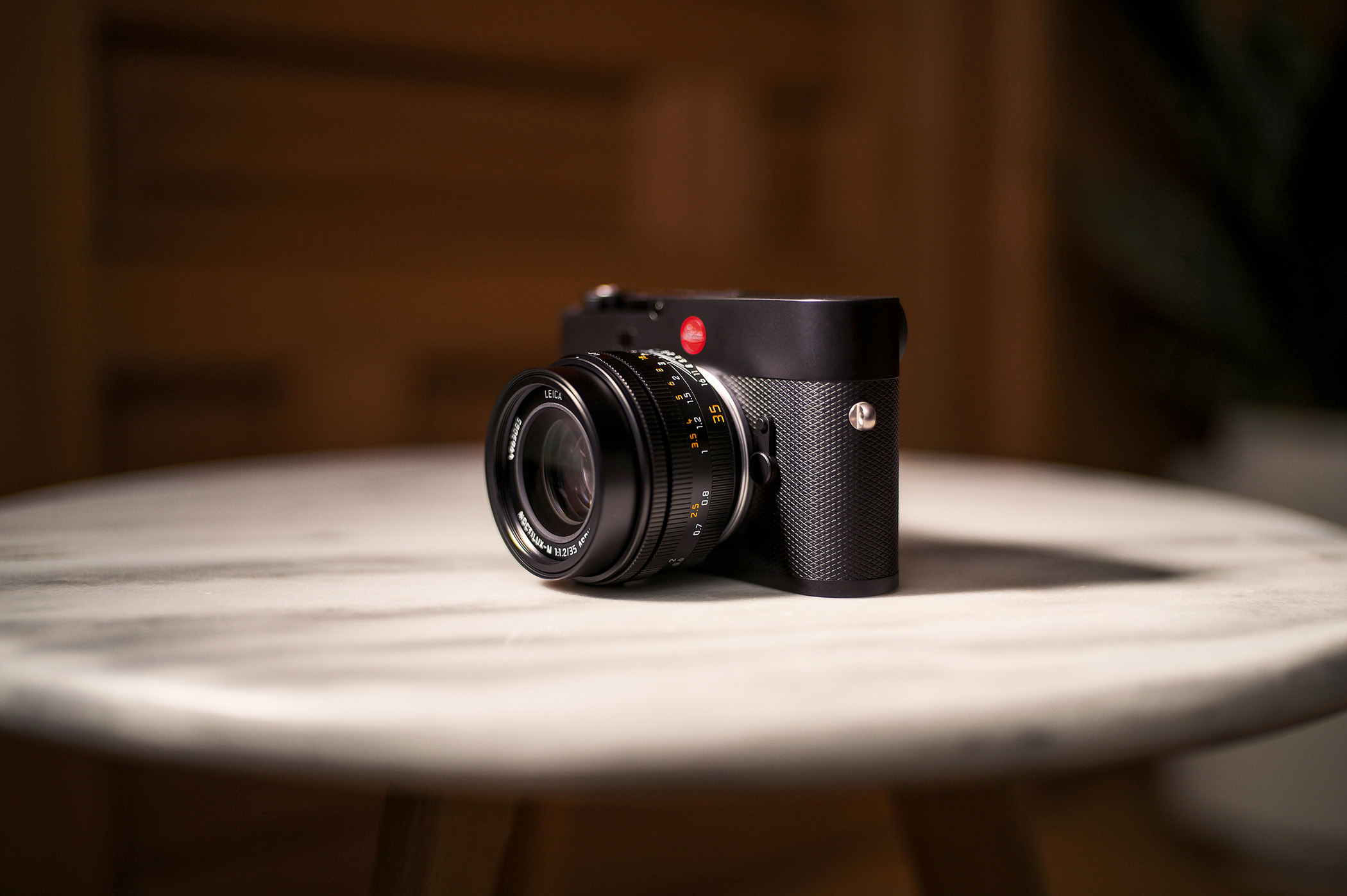 M-cameras with a rangefinder can focus as close as 70cm via the optical viewfinder. In the close-up range of 70–50 cm, focusing is carried out via Live View on the rear LCD panel or the Visoflex 2 clip-on viewfinder. The wide field of view of the Noctilux-M 35 f/1.2 ASPH. supports this and enables precise focus.