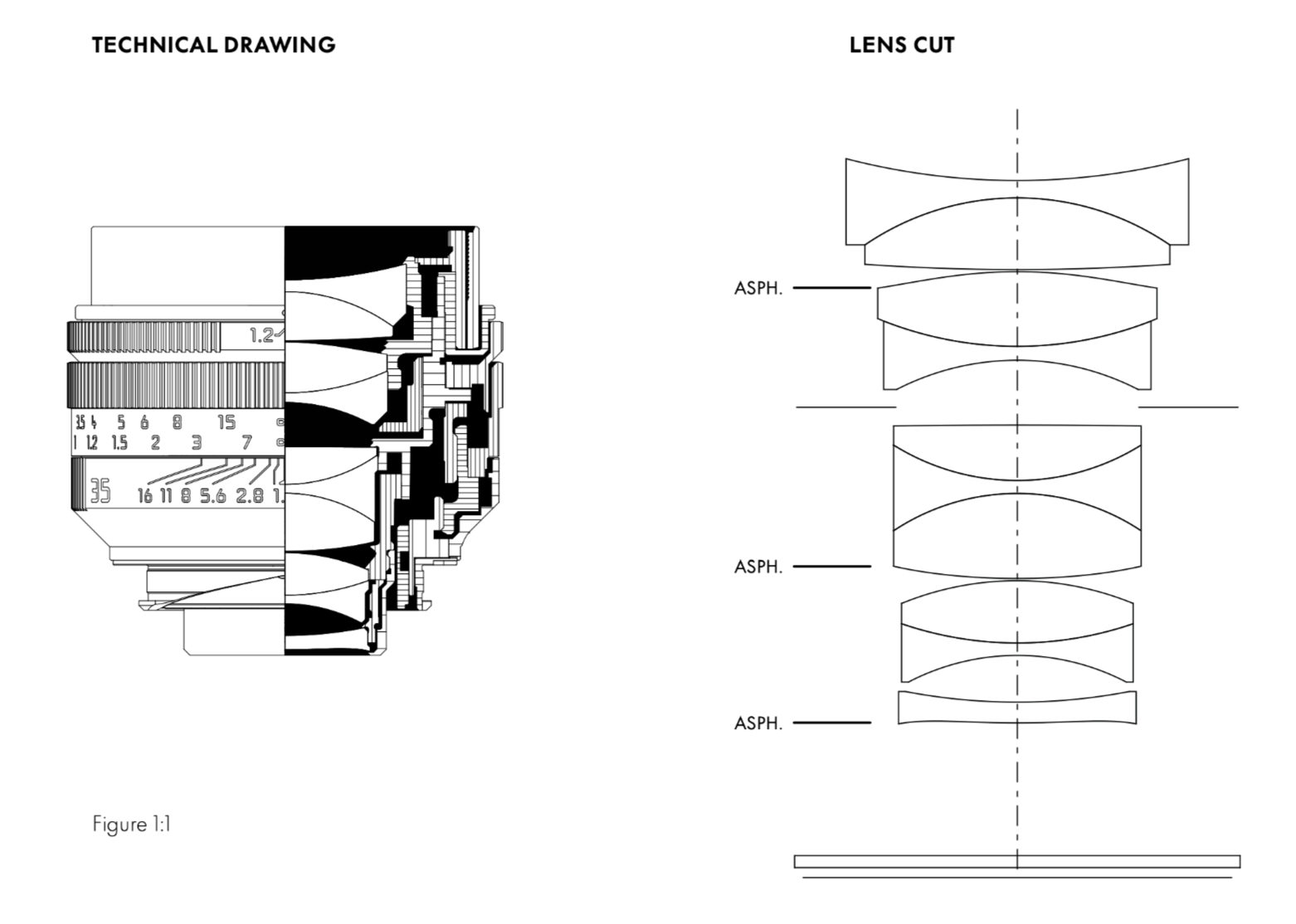 The optical design of the Noctilux-M 35 f/1.2 ASPH. comprises ten elements in five groups, including three aspherical lenses, and a floating element which ensures consistent imaging performance over the entire focusing range. The integrated lens hood reduces glare and reflections, ensuring high contrast and brilliant colour rendering, even with backlighting.