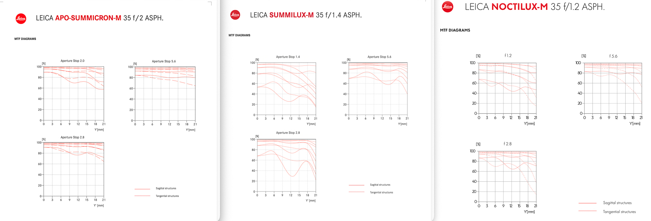 Particularly interesting is the comparison between the MTF figures of the three current 35mm lenses:
