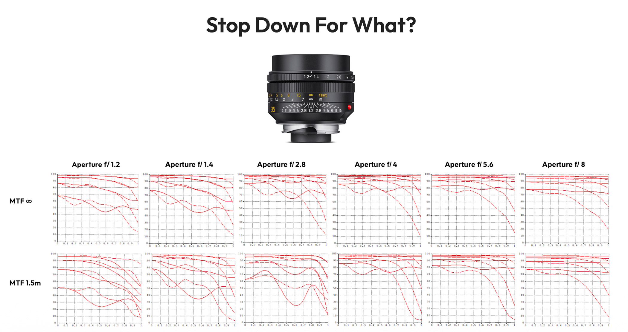 So, despite being faithful to the dreamy history of the Noctilux lenses, at heart this is a thoroughly modern lens, and the MTF figures certainly bear this out: As Peter Karbe famously said, “Stop Down for What”