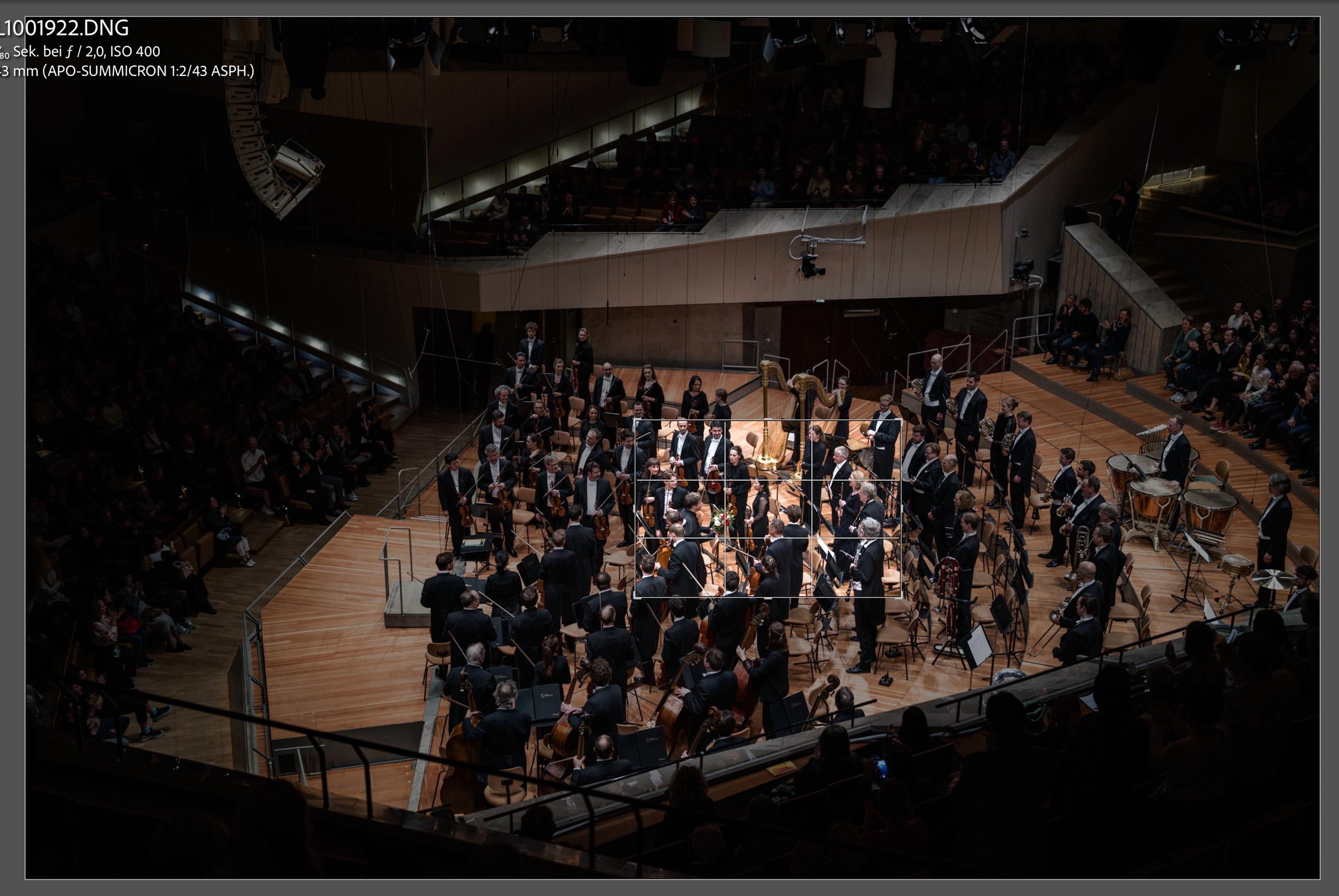…and by that, I mean the leaf shutter which is built into the lens. It works mechanically up to 1/2000s, but is still so quiet that even the photographing of soloists in pianissimo passages does not make anyone bat an eyelid.