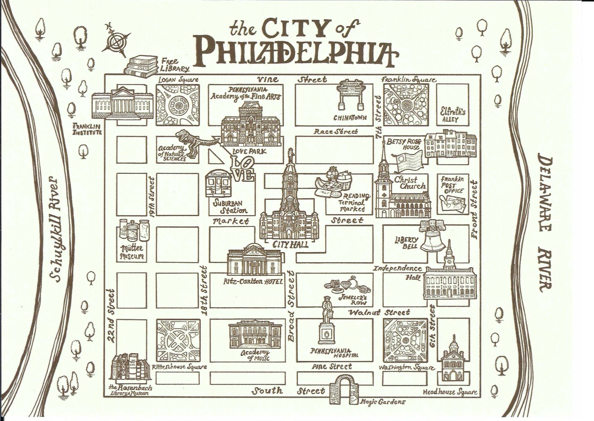Philadelphia is the “Zelig” of American history. Wherever you look in the old part of Philadelphia (which is where we were staying, and shown in the postcard map above) you trip over history and see it emblazoned on plaques, old homes, and public buildings. You cannot ignore Philadelphia and hope to understand American history and why it is the way it is.