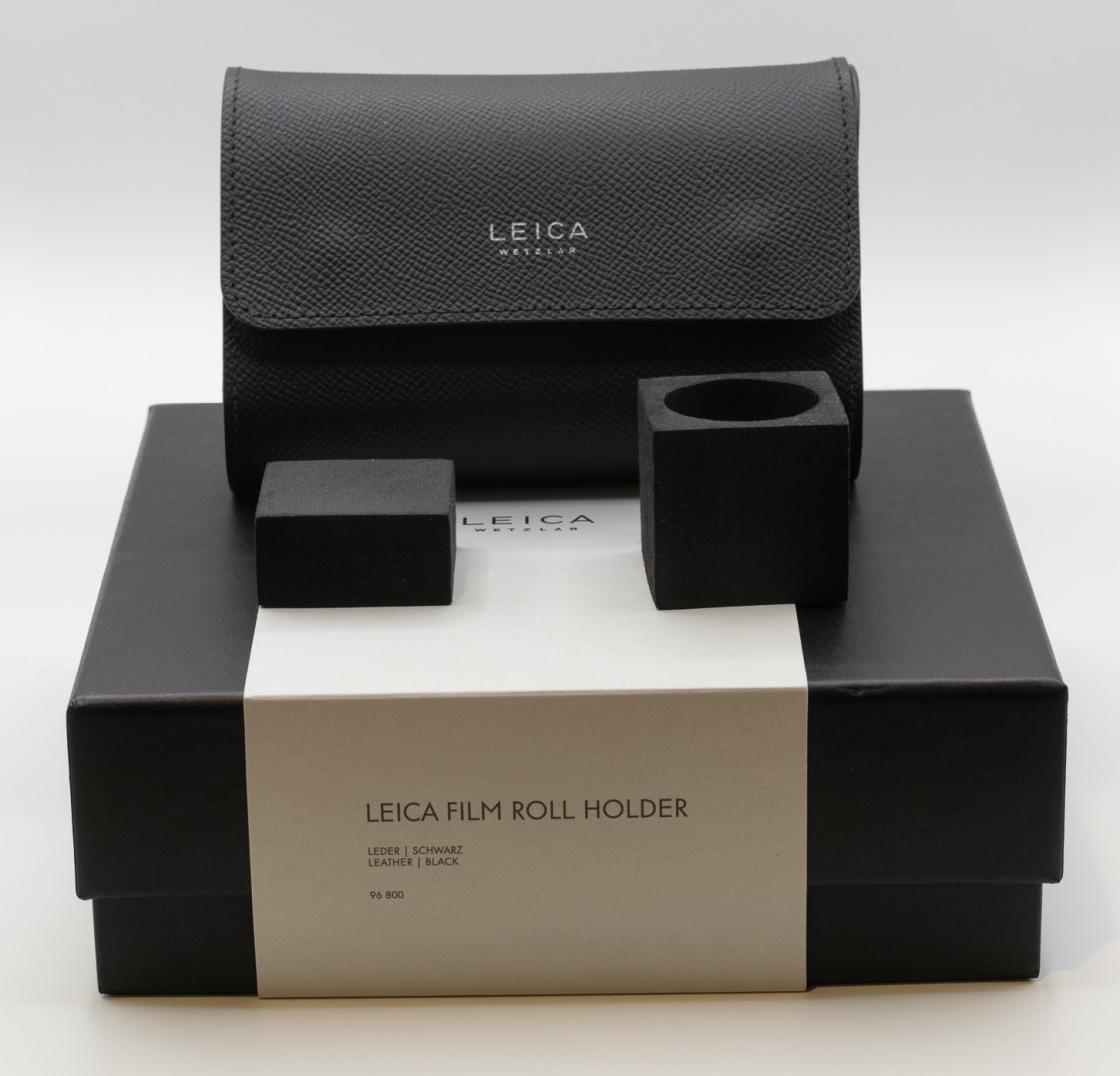 Late last year, Leica introduced a new line/collection of high-quality leather accessories. It is a diverse assortment of knick-knacks, all made of very high-quality black leather. There are (among others) business card holders, coin trays, Air Tag Fobs and wallets. The item that I coveted most for a Christmas present was the Leica Film Roll Holder.