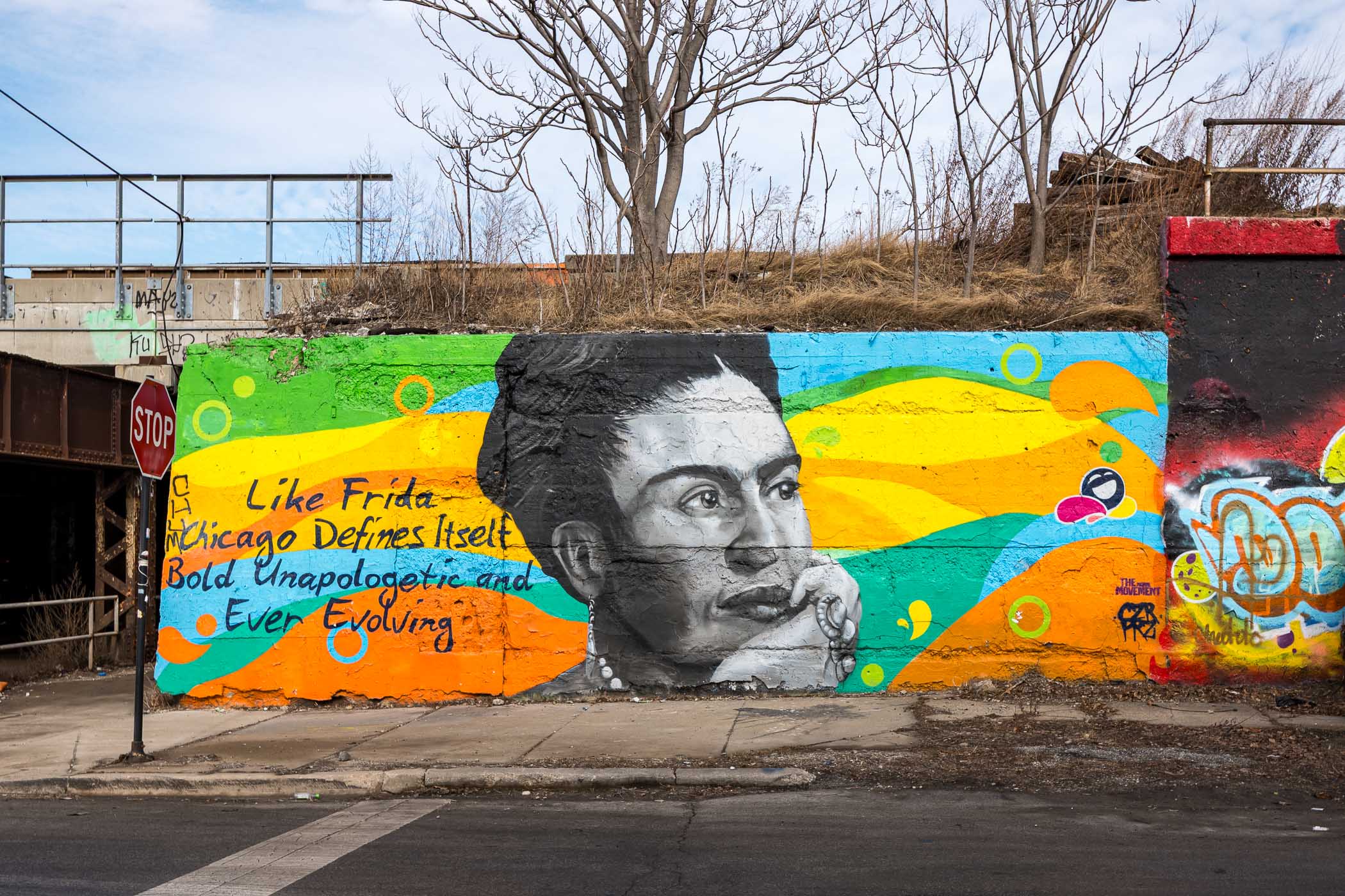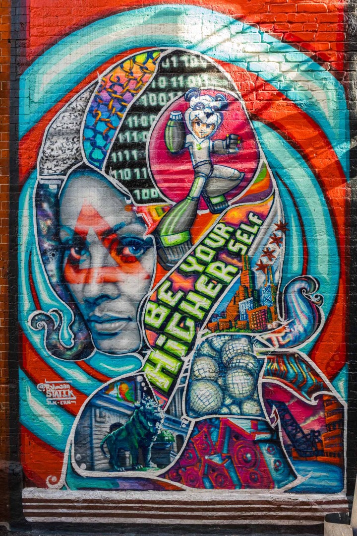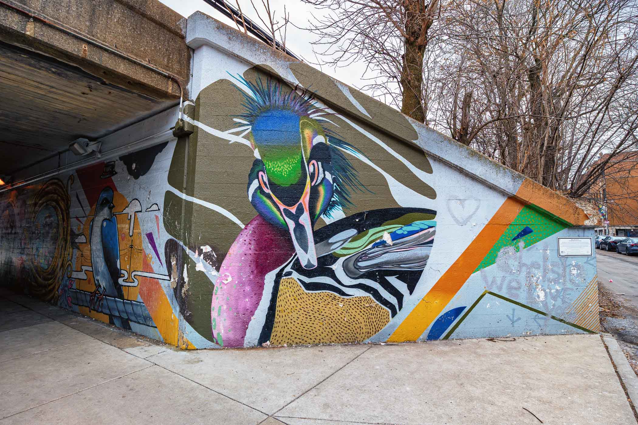 This is a broad swath of the city that covers large “brownstone” houses to swanky high-rises, the working blocks of the Loop, and the lakefront. Neighbourhoods that run along or close to the lake have their fair share of street art, on high walls and on underpasses.