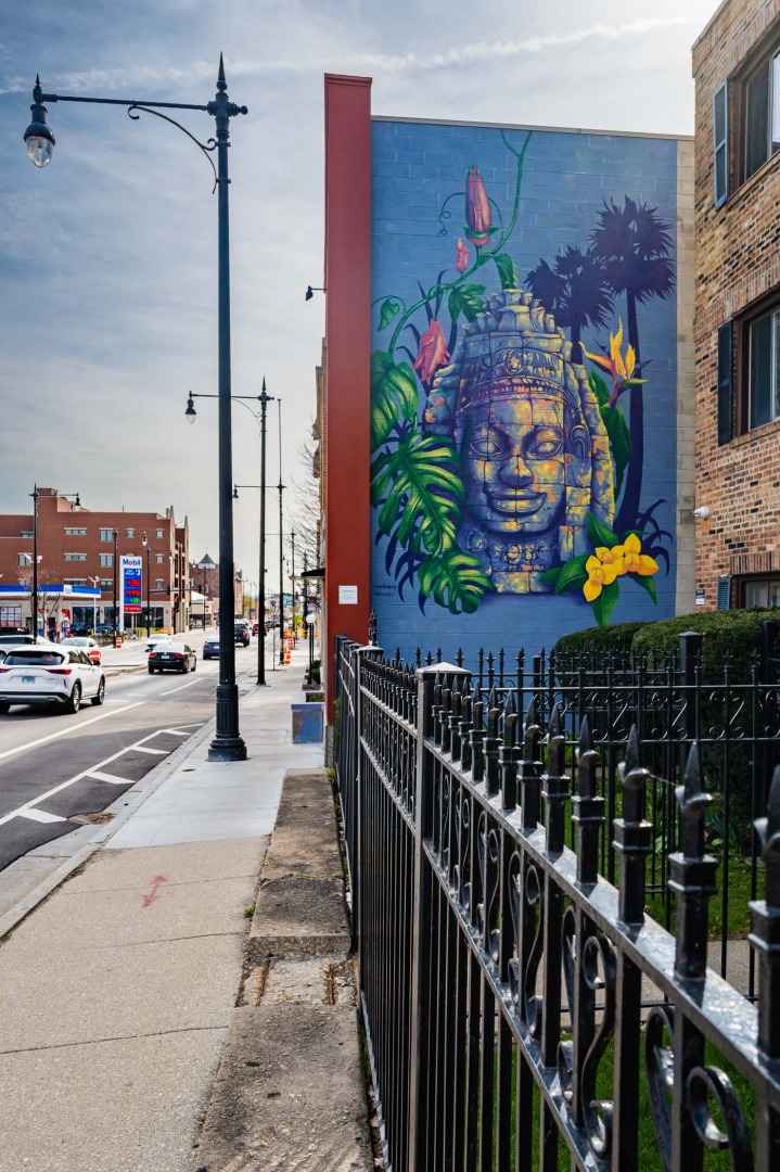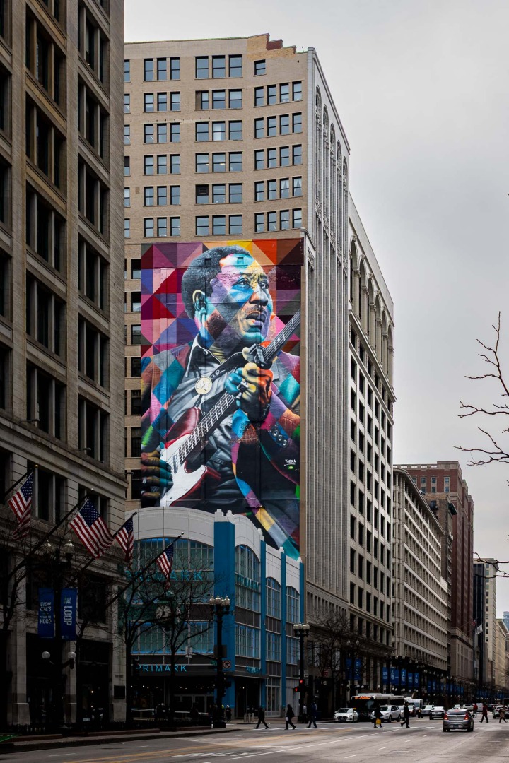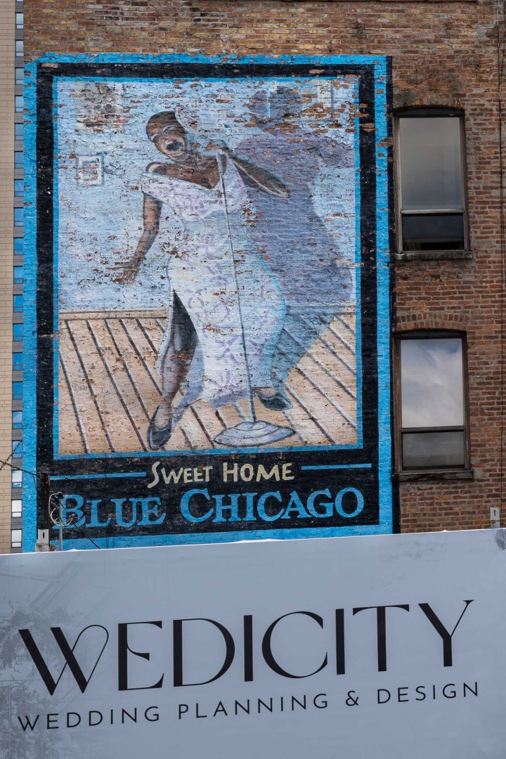 Art still makes it here. There are homages to blues musicians like Muddy Waters to Buddy Guy, to an oddball juxtaposition of a blues club and a new wedding service. But art is everywhere and is quirky in that it follows no obvious theme. But it’s a good reminder to look up when you’re out in this area.