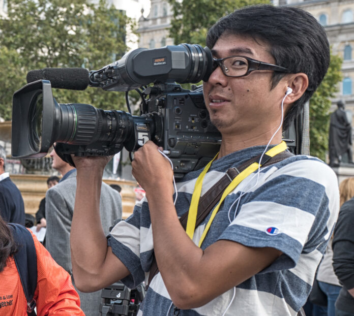 Watch the eye. This cameraman at the Japan Matsuri festival in London is demonstrating the first principle of viewfinder use....