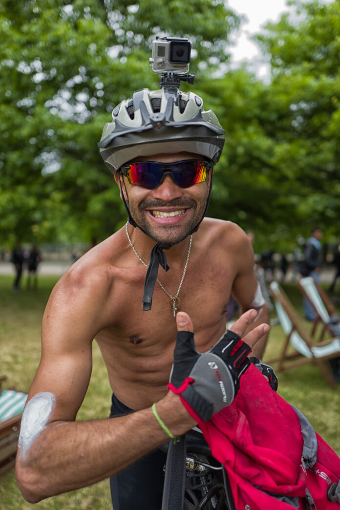 The author explores London on the inaugural day with a new Leica Q camera, capturing the annual Naked Bike Ride...