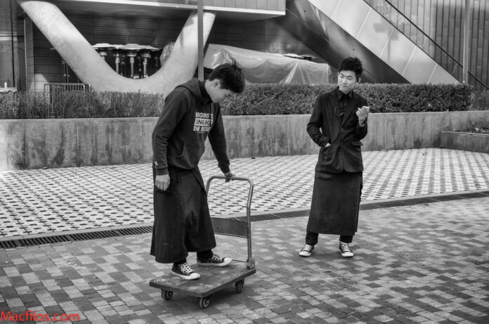 Two off-duty fúwù yuán turn their table-waiting talents to kartskating, obviously a new craze in Sanlitun, the Soho of Beijing....